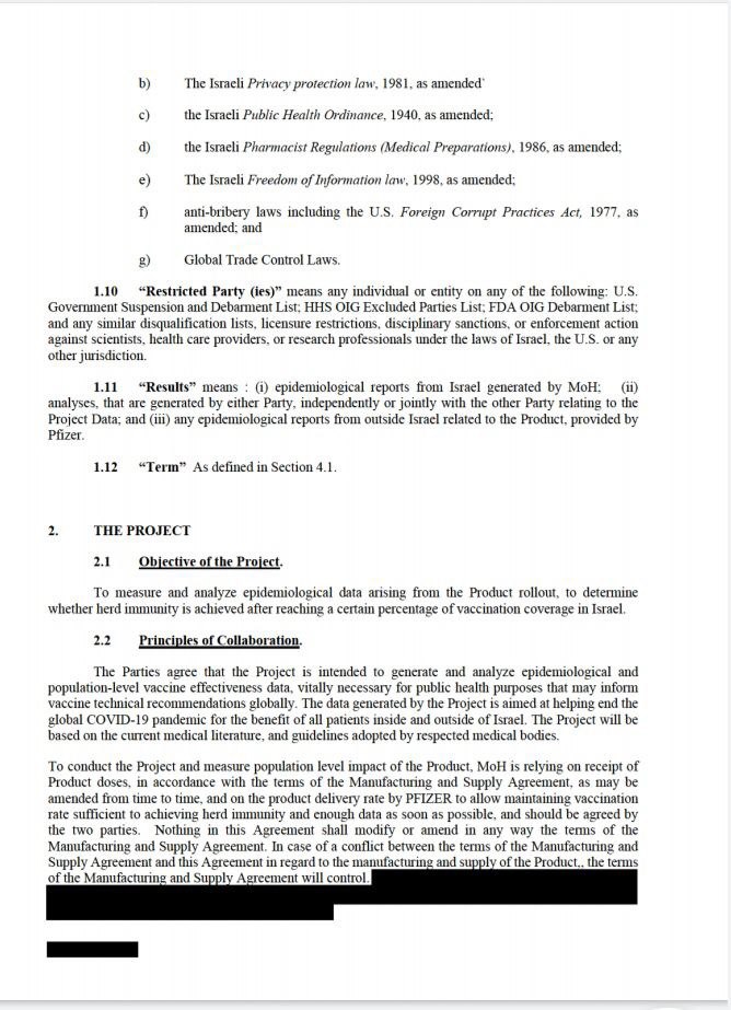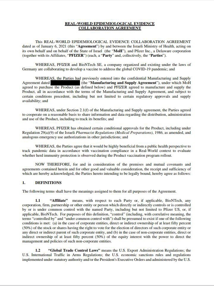 Dr. Tehila Schwartz-Altshuler, senior attorney at the Israel Democracy Institute, said: "Anyone who can claim that this is not a clinical trial is simply a liar. This is the most extensive study of people in the 21st century. Israel is becoming an experimental platform, not to mention a backyard for the world. It may be beautiful and altruistic, but it should have been shared with the citizens of Israel... There is no clearer research hypothesis than section 2.1 of the contract between the State of Israel and Pfizer, which states that the purpose of the "experiment" (mandatory vaccination of Israeli citizens) is to "measure and analyze". To say it's not a study is to tell a lie. In section 2.2, the word "data" appears over and over again, and the idea is that it's information from which you want to learn something else, rather than transferring it to the medical records of the patient you were treating. It's a collaboration for research, so there are also "Principles of Cooperation." Moreover, Schwartz-Altschuler explains that "Article 4 - like any medical research agreement - has conditions and terminations, and there are agreements regarding the safety of the project. This once again confirms the fact that this study. For example, under the paragraph, the agreement will be annulled if one of the parties deems it "scientifically insignificant."