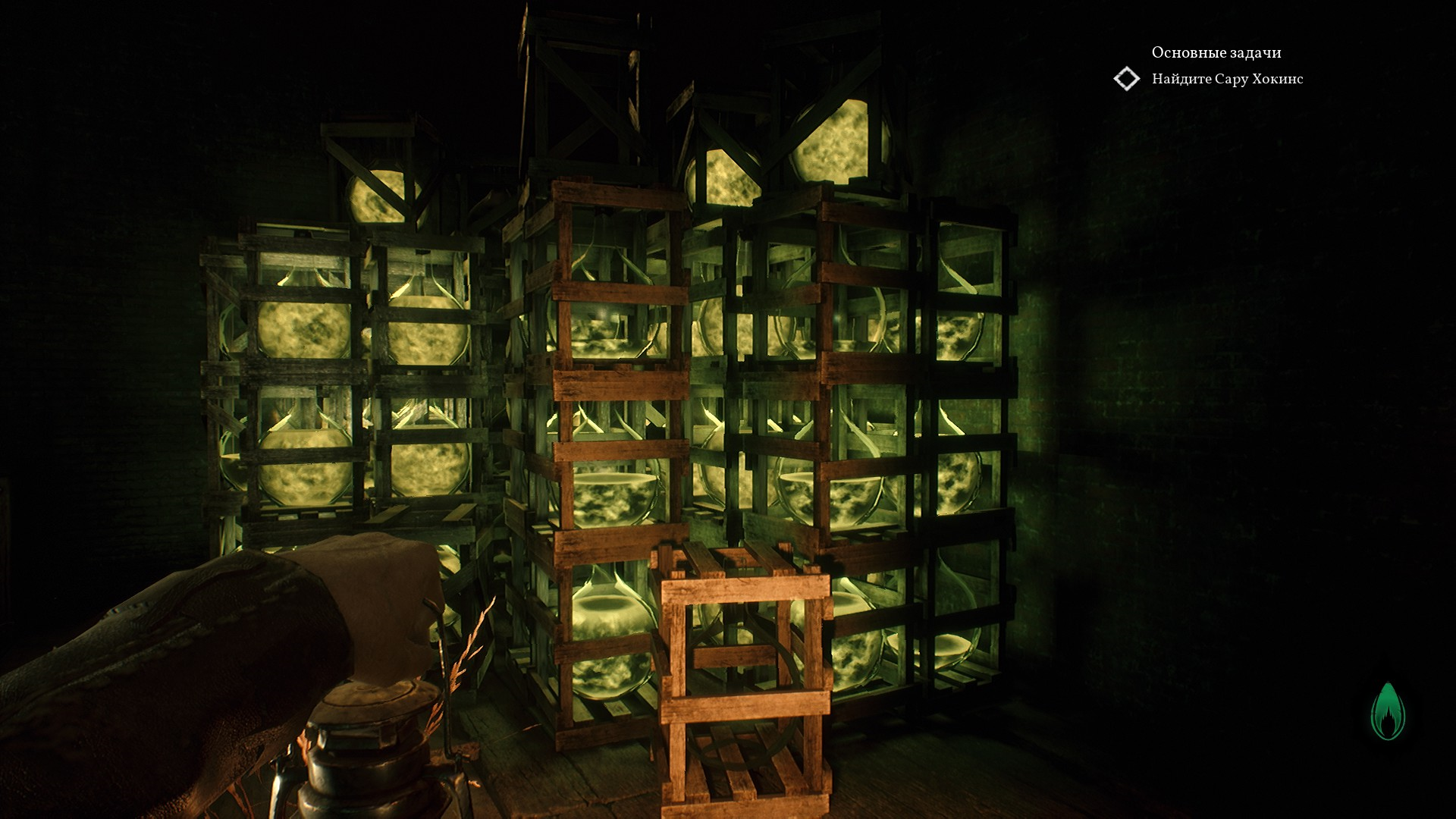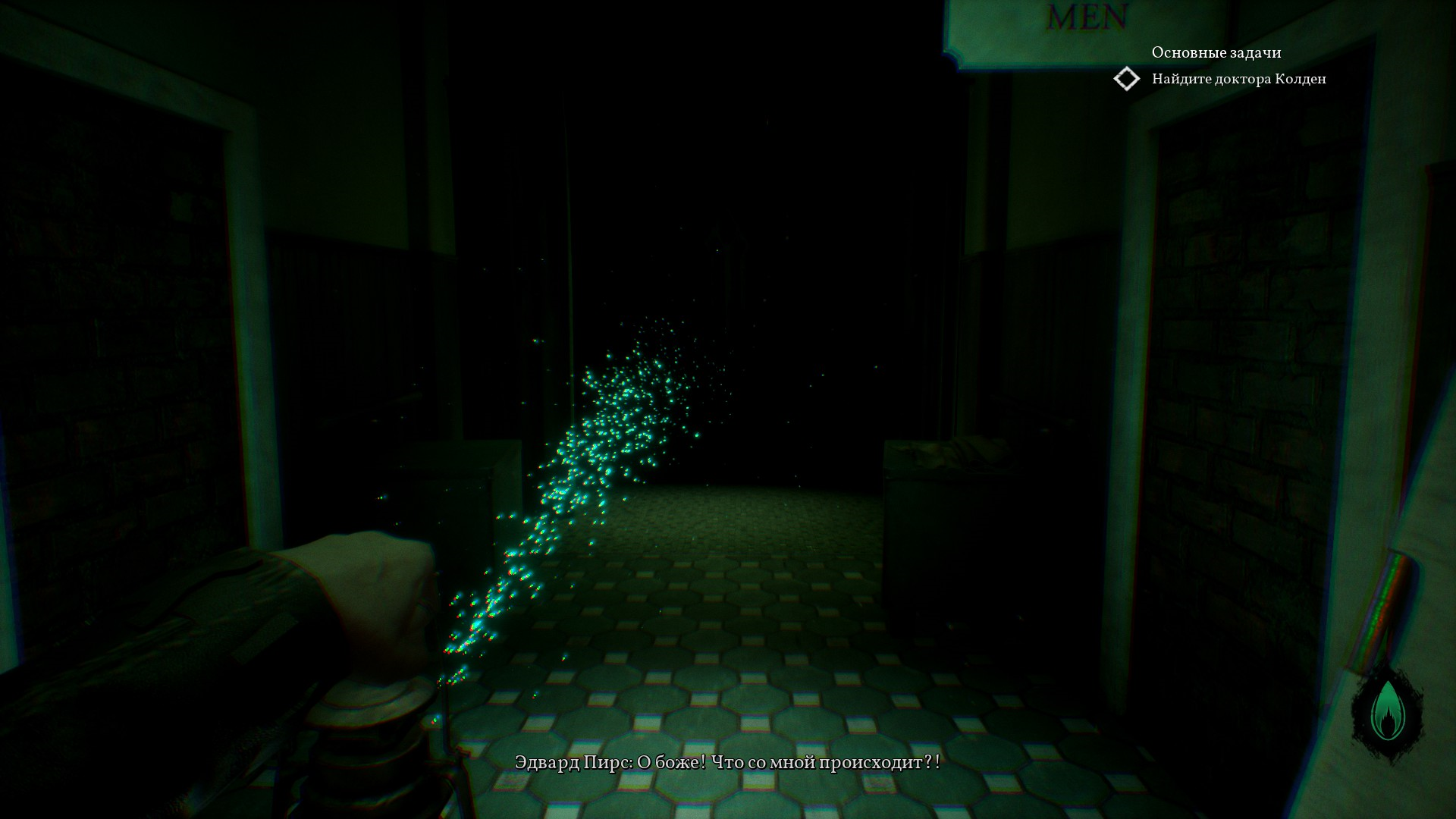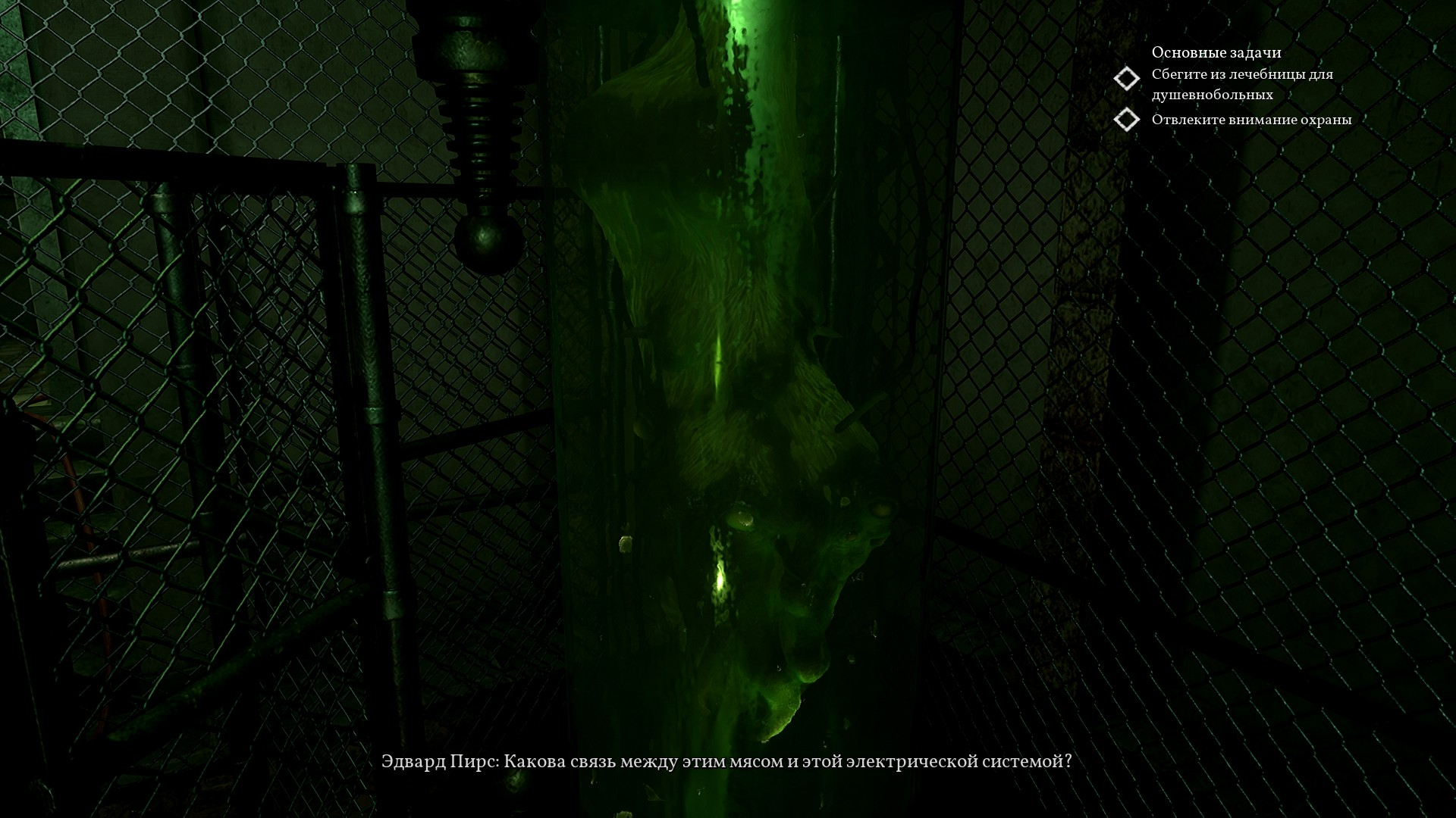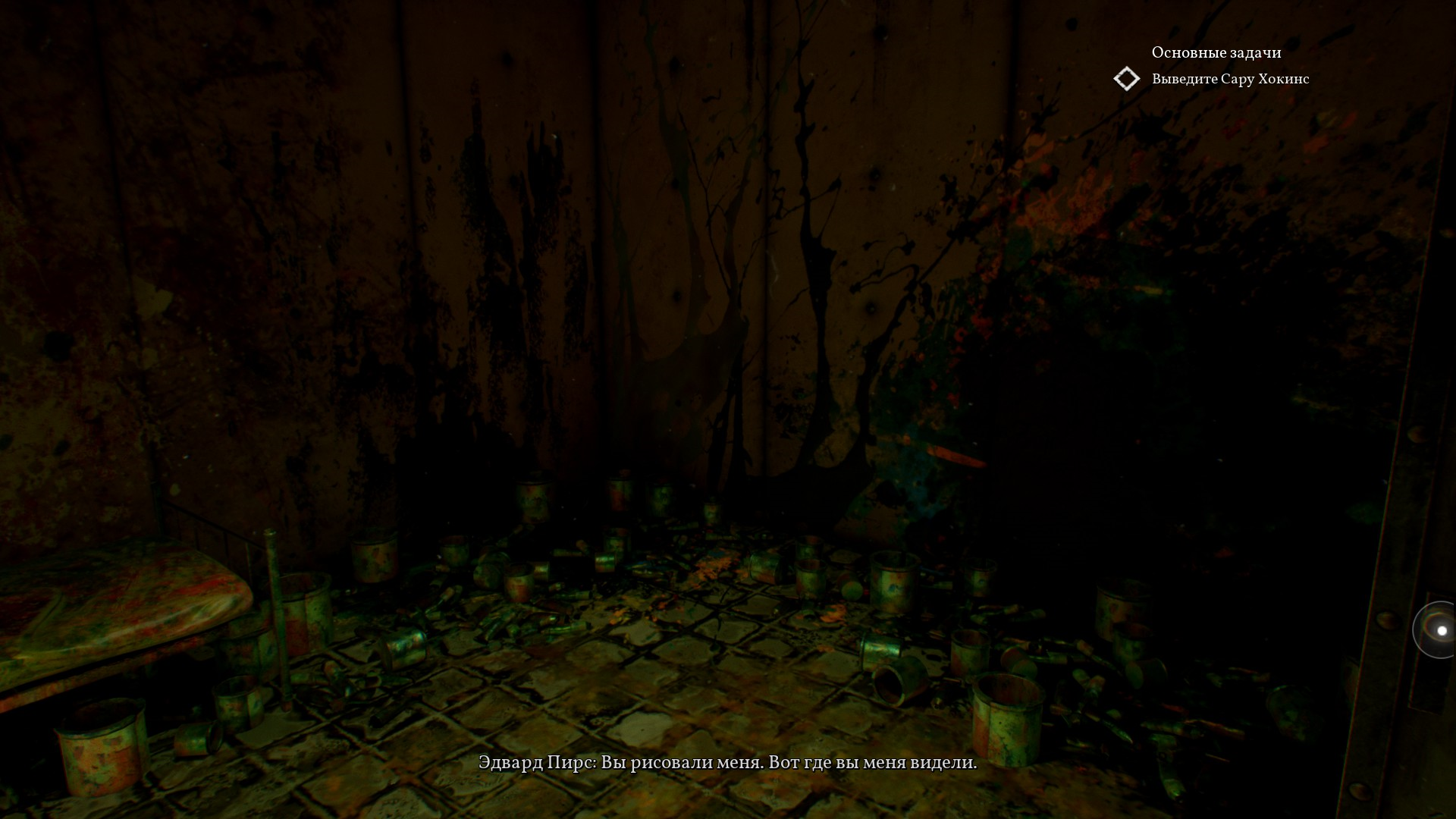 После решения загадки с двумя лампами - одной зеленой, а второй обычной желтой - Пирс выбирается из больного измерения и идет дальше вниз, в подвал.