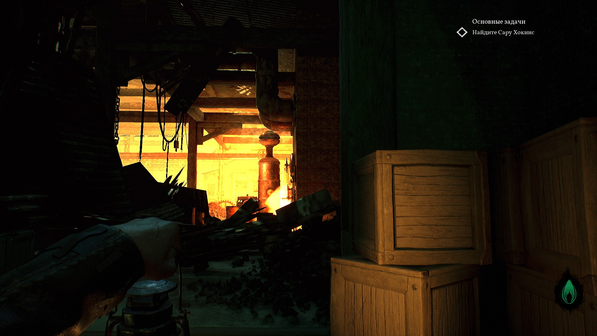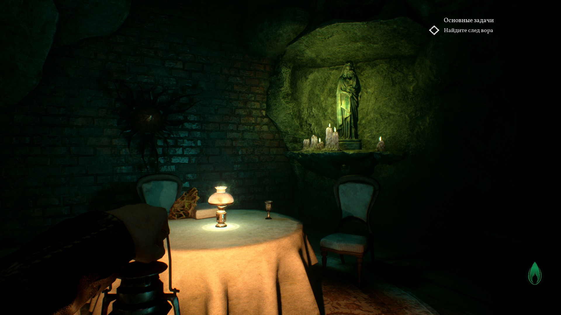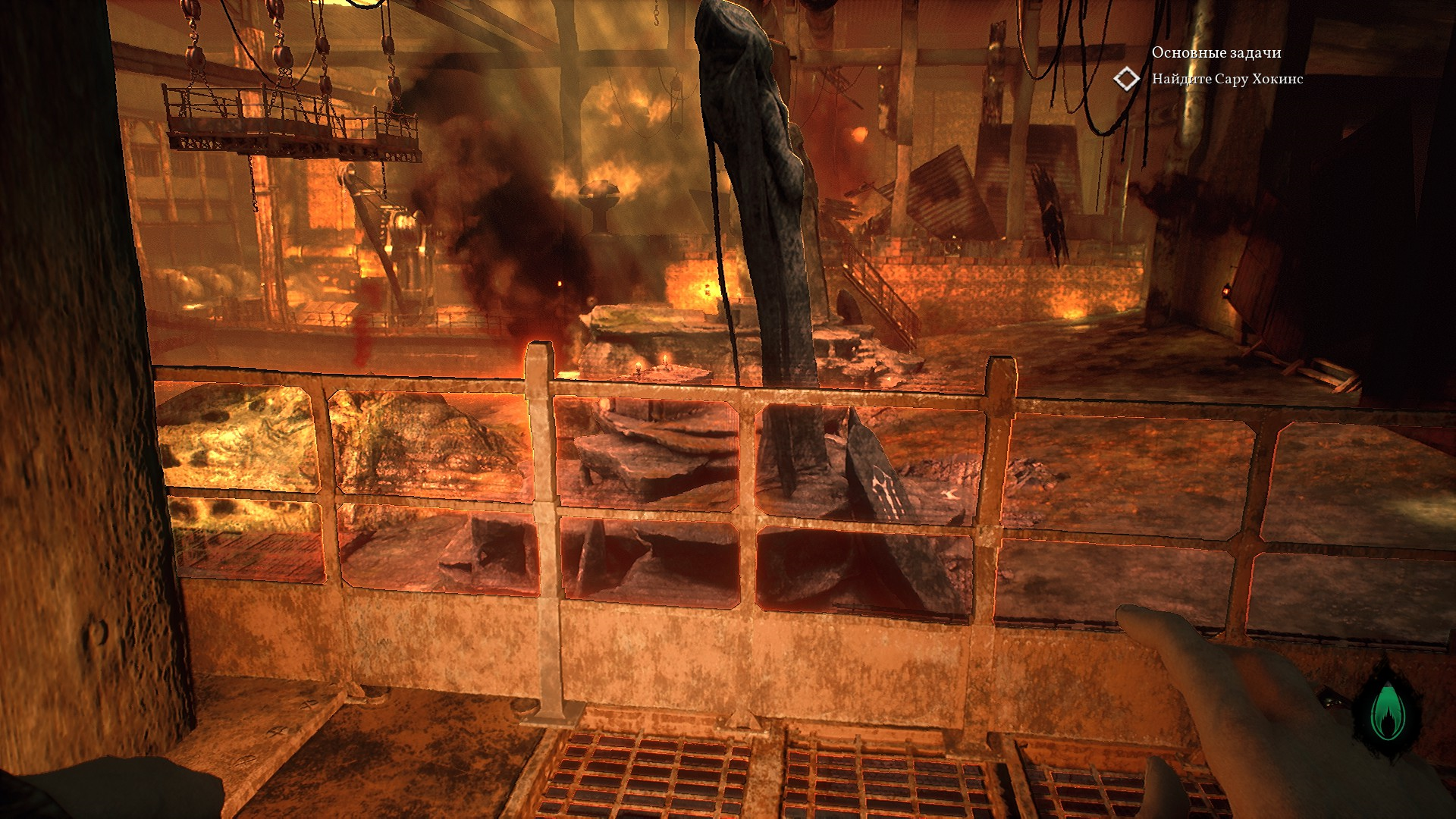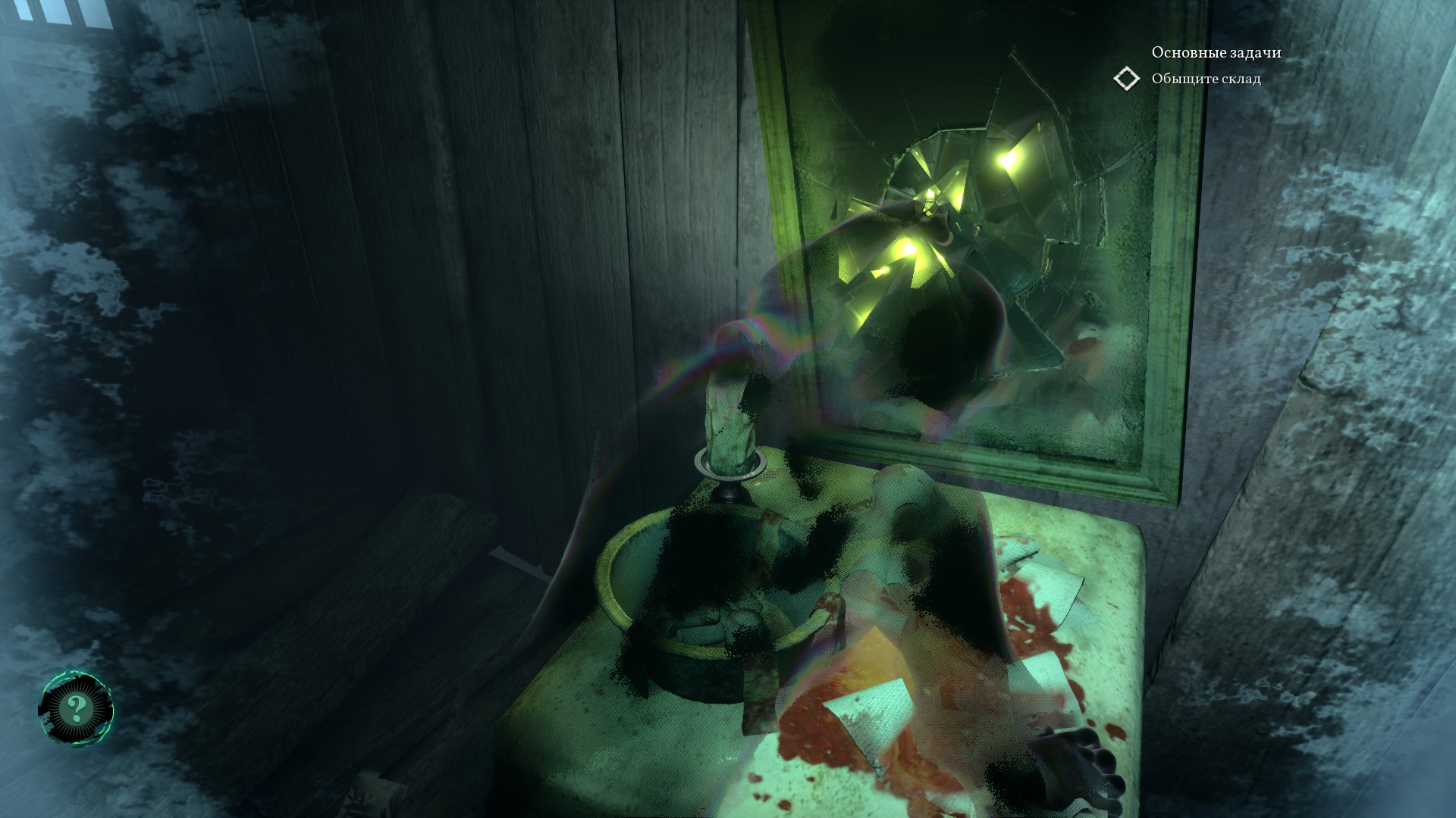 После решения загадки с двумя лампами - одной зеленой, а второй обычной желтой - Пирс выбирается из больного измерения и идет дальше вниз, в подвал.