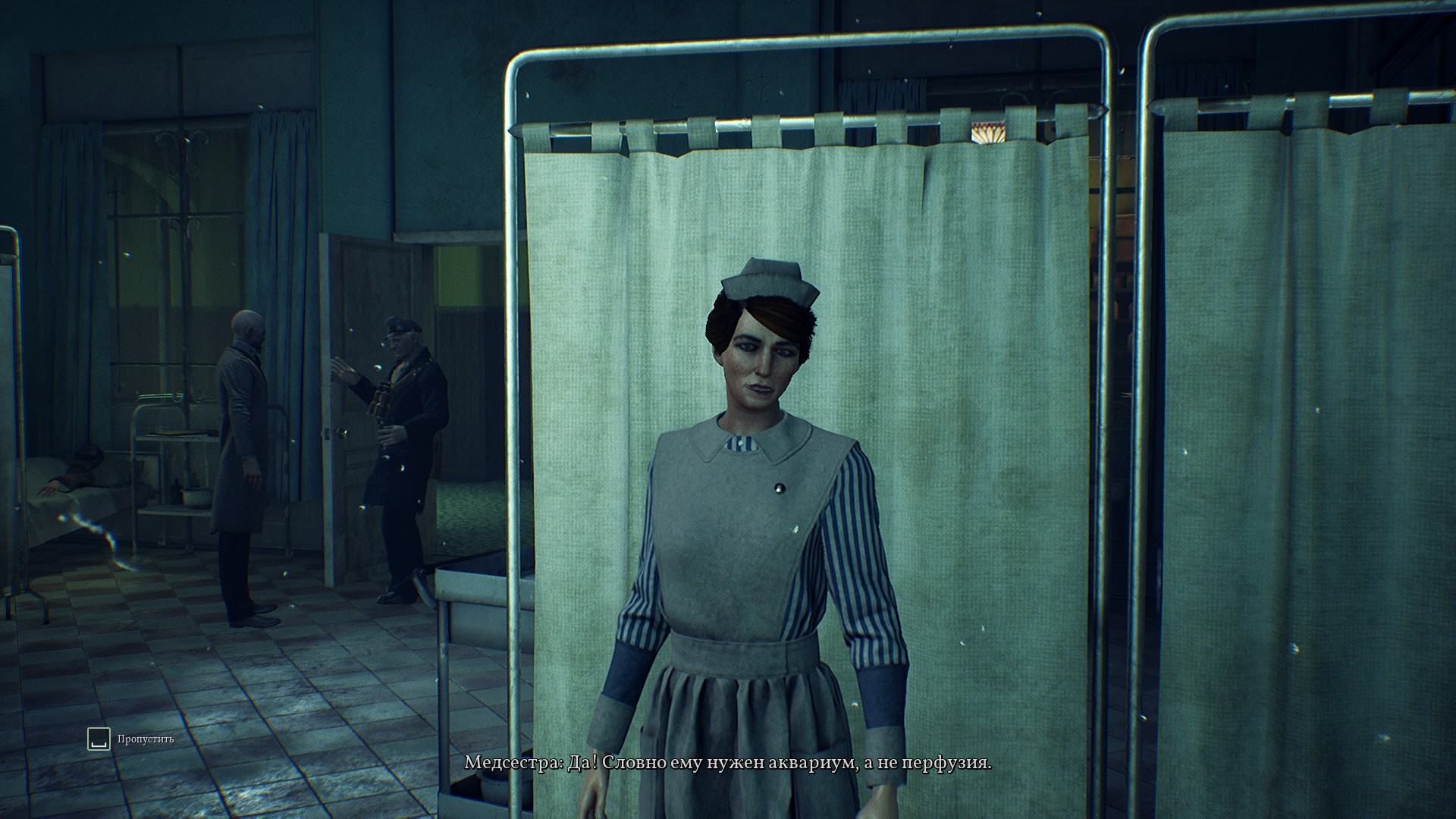 В данный момент Мэри общалась с медсестрой по поводу пациента, которому было плохо на койке, но зато классно в воде. Доктор осматривает больных и понимает, что они все мутируют во что-небудь нечеловеское, но Фуллер все отрицает сославшись на неопытность первой.