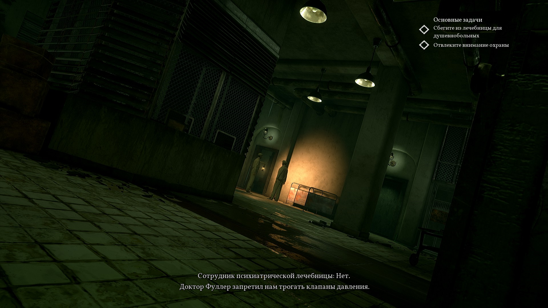 Чтобы отвлечь охранников от главного входа нужно увеличить давление в клапанах, что и делает наш детектив в режиме стелса - хоррора.
