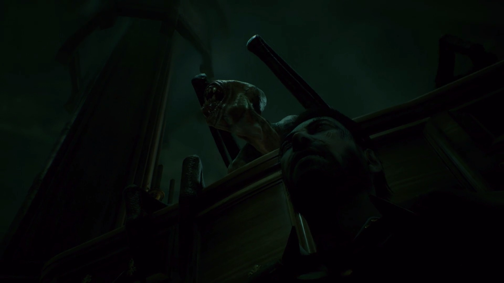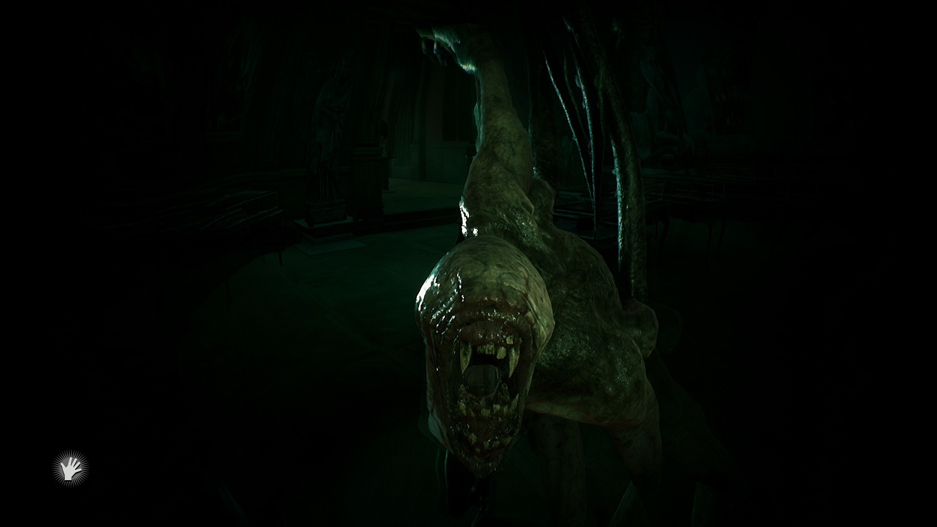 Пирс вспоминает, что в заметках было что-то нарисовано и сказано про нож - он находит его среди экспонатов и протыкает ним картину. Портал закрывается - тварь "запылесосывается" в него, но Пирс замечает что какая-то жижа попала на руку. Он пытается ударить ножом по ней - но тут его останавливает Кэт с которой начинается диалог.