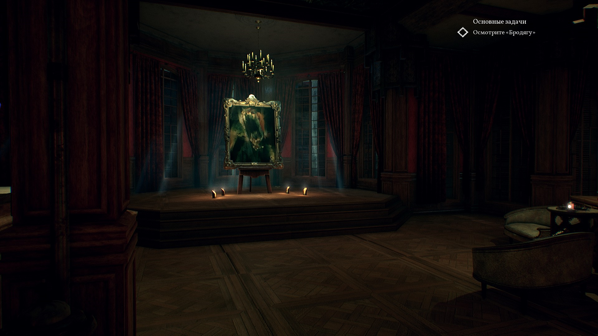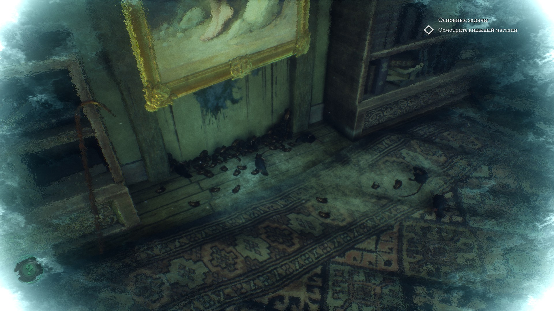 Ирен рассказывает, что Сара продавала Френсису странные стремные картины, от чего у Френсиса поехала бошка и он себе вырвал глаза. Самая поехавшая картина называется "Бродяга", она стоит в галерее и Ирен любезно дает нам ключ от нее. Интересно, что в доме присутствует Кэт, которая хочет перебашлять картины Ирен, не смотря на то, что Френсис приказал жене сжечь их.