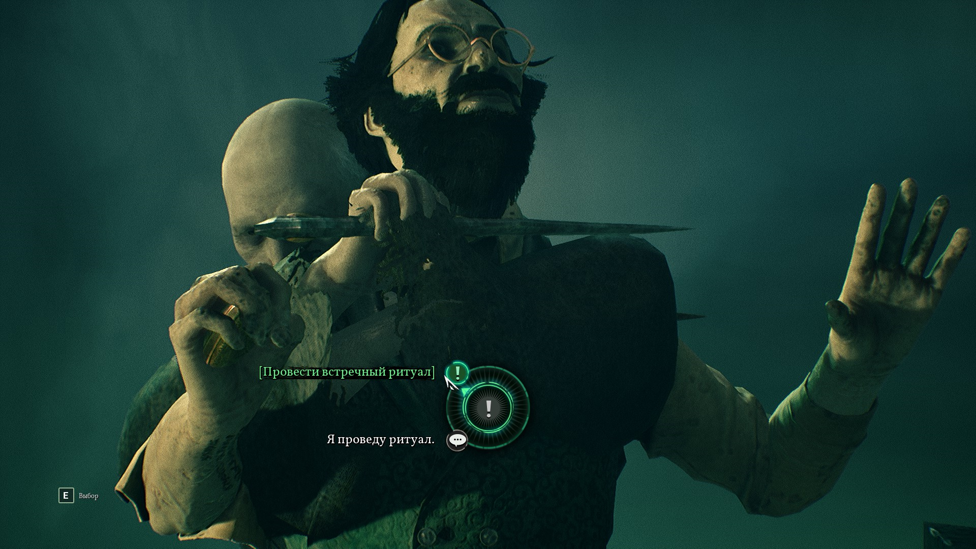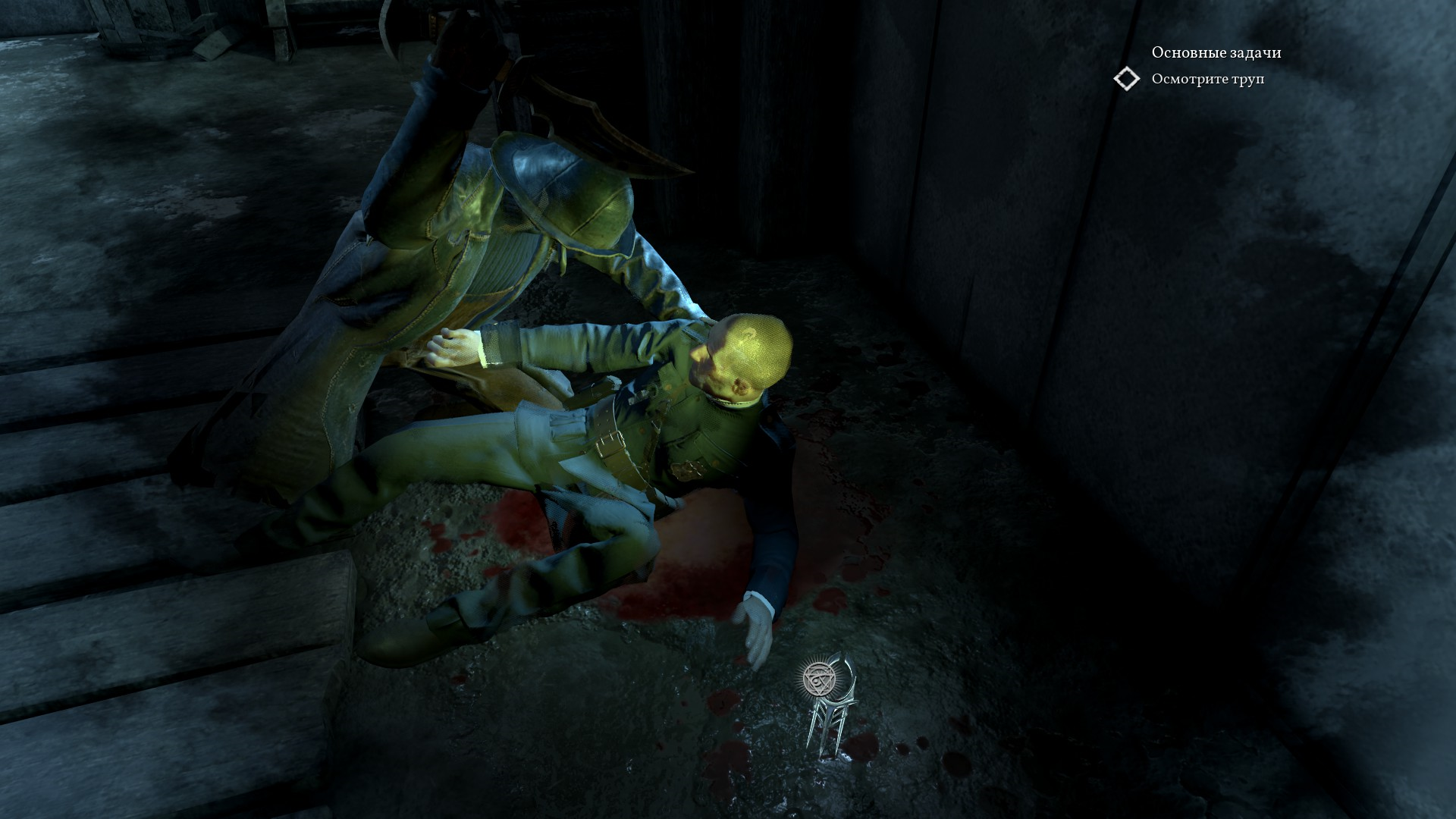 Детектив наблюдает за тем, как культисты обращают еще одного чела в себе подобного. На самом деле, здесь начинается стелс до конца этой локации.