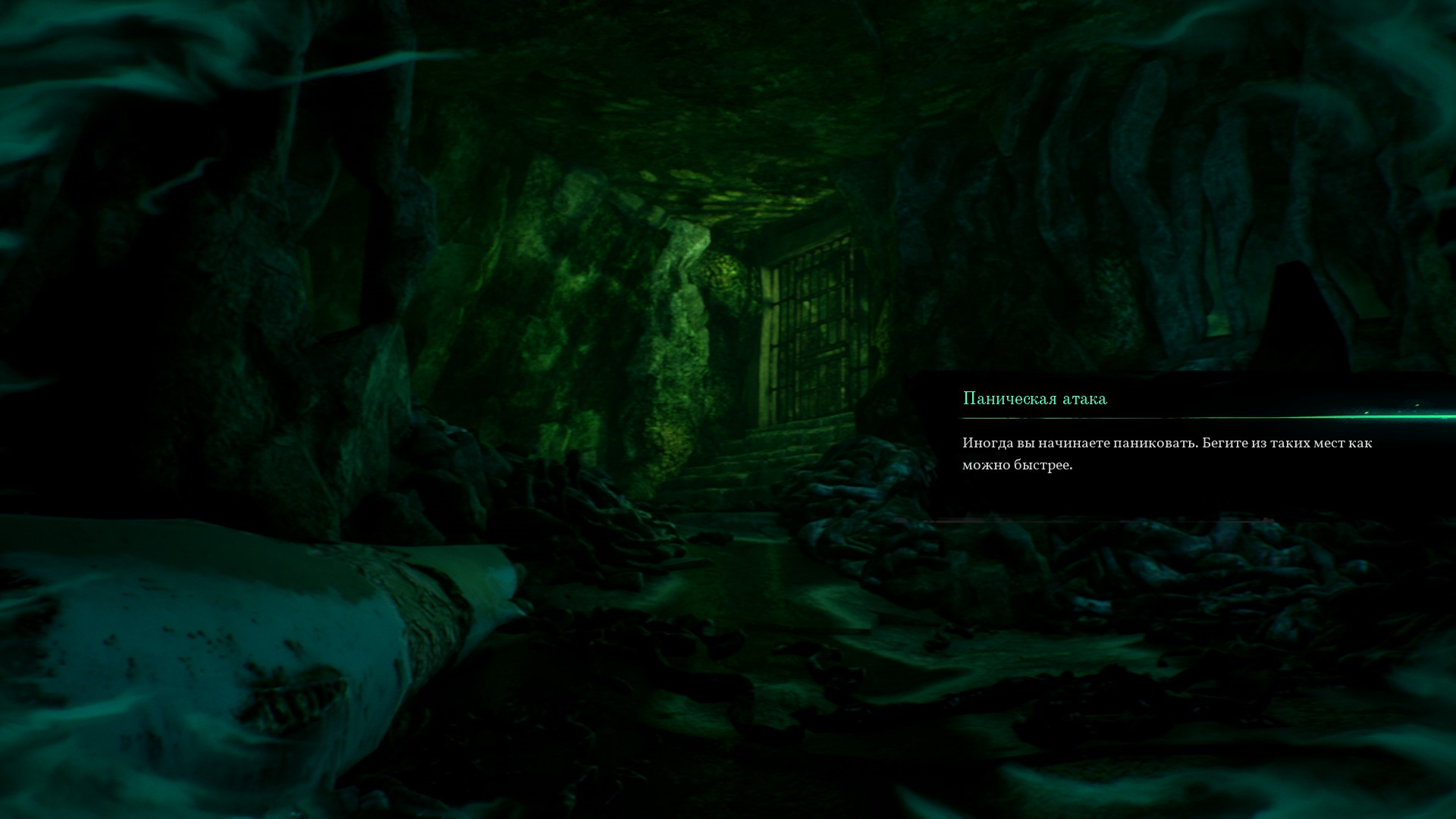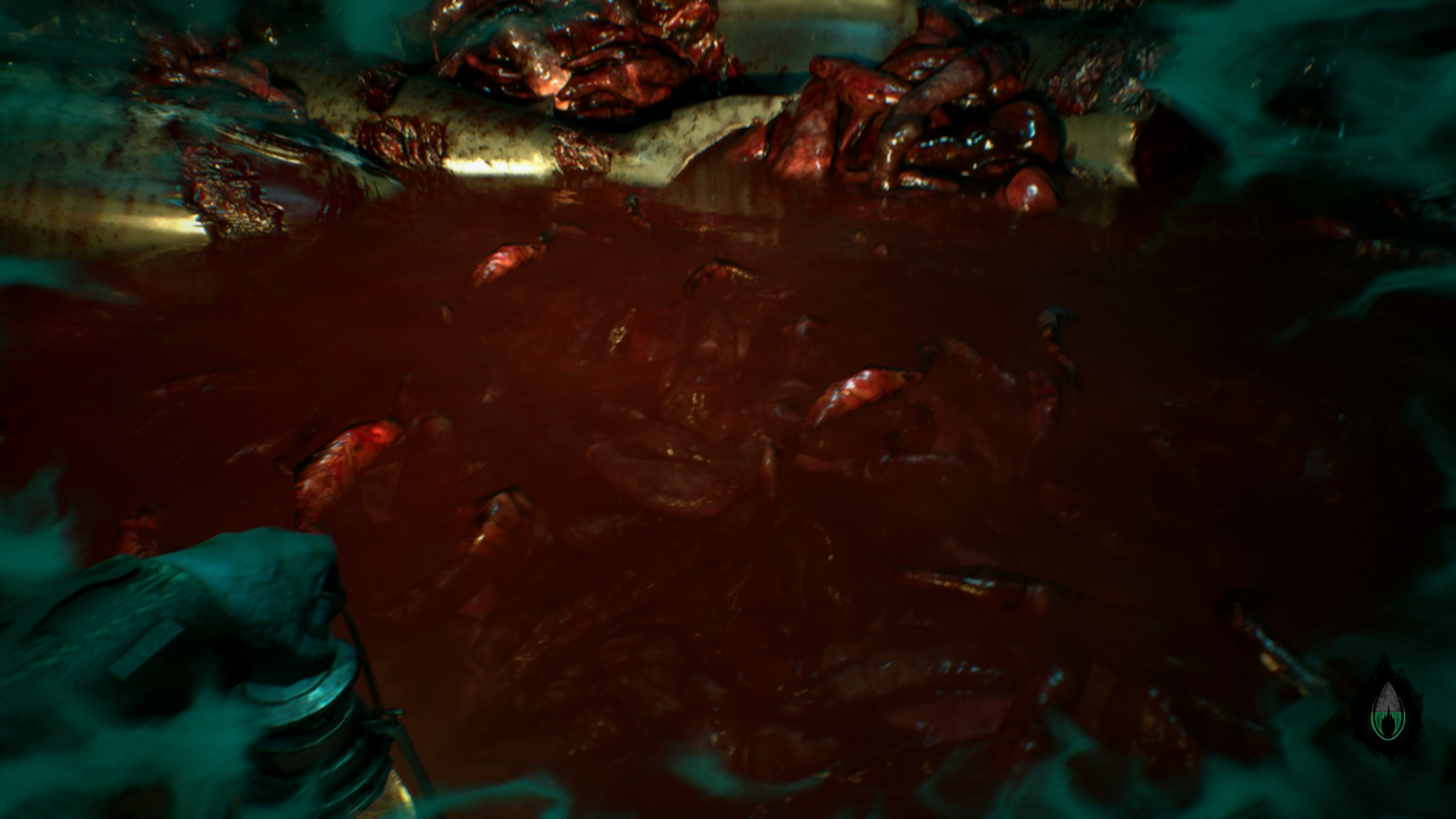 Детектив упал в смесь человеческих кишков, разрезанных туш рыб и прочее зловоние. Тут у него начался первый панический припадок - далее он будет встречаться все чаще и чаще по игре. Видимо в эту яму сектанты выбрасывали трупы и другие жертвоприношения.