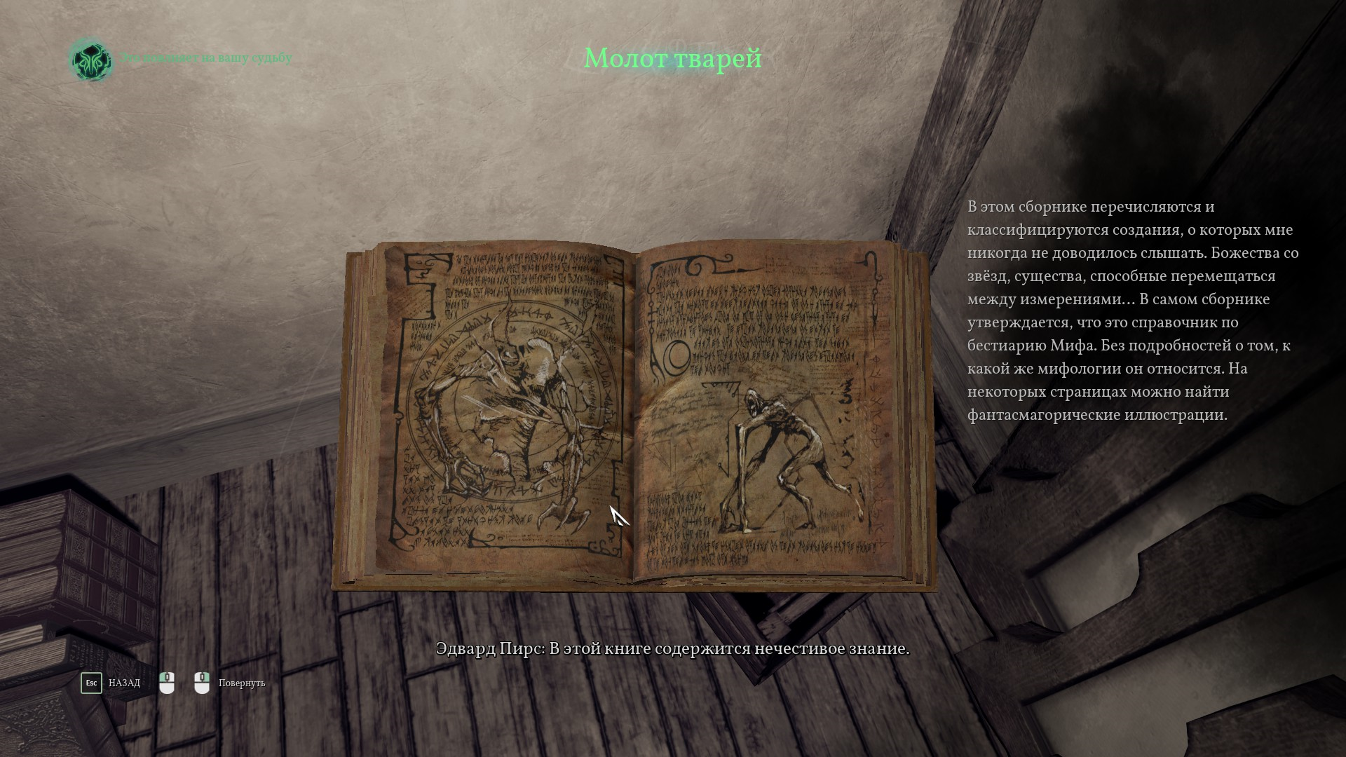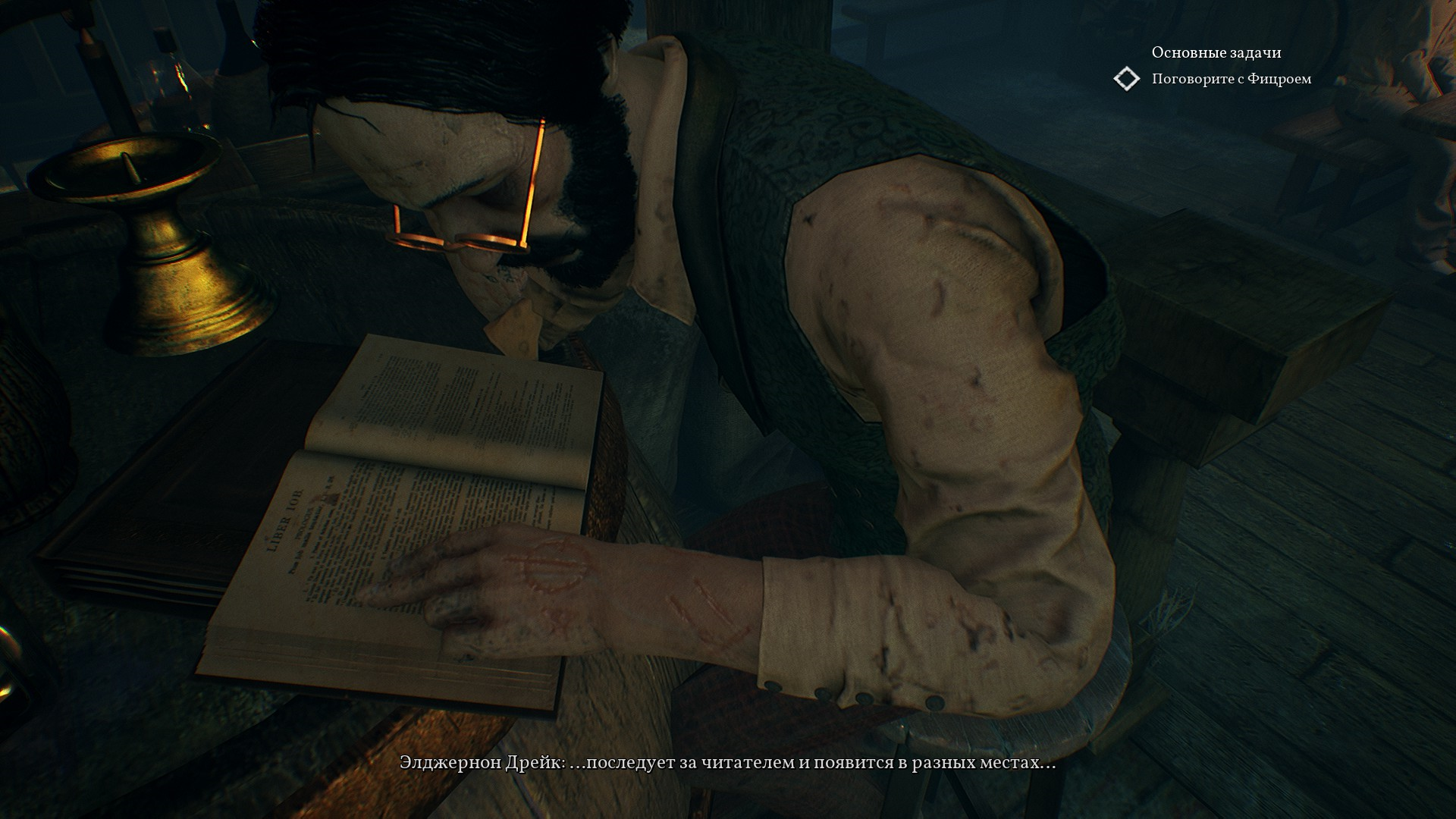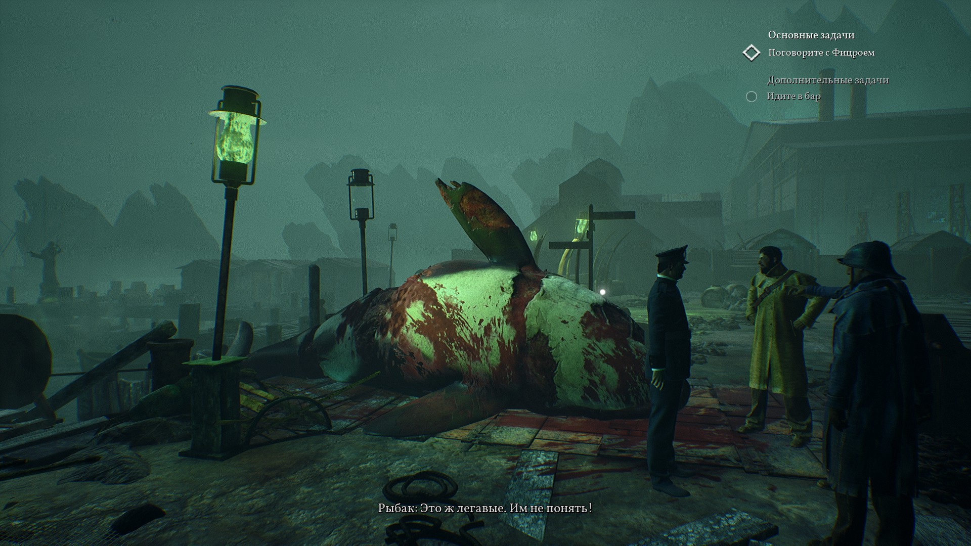 Кстати, в кабинете Фицроя понимаем, что сам капитан, Фуллер и Хоукинс нажрались плоти Левиафана - чудища, которого словили в тот самый день, когда был большой улов и стали культистами. Если быть точным, то создал культ именно Фицрой, Фуллер - решил проводить опыты, а Хоукинс остался не с чем, но все получили необычные нечеловеческие способности. Оказалось, что в это время Сара написала портер Искателя Истины - детектива, который прибыл на остров, которого сопровождал сам Фицрой.