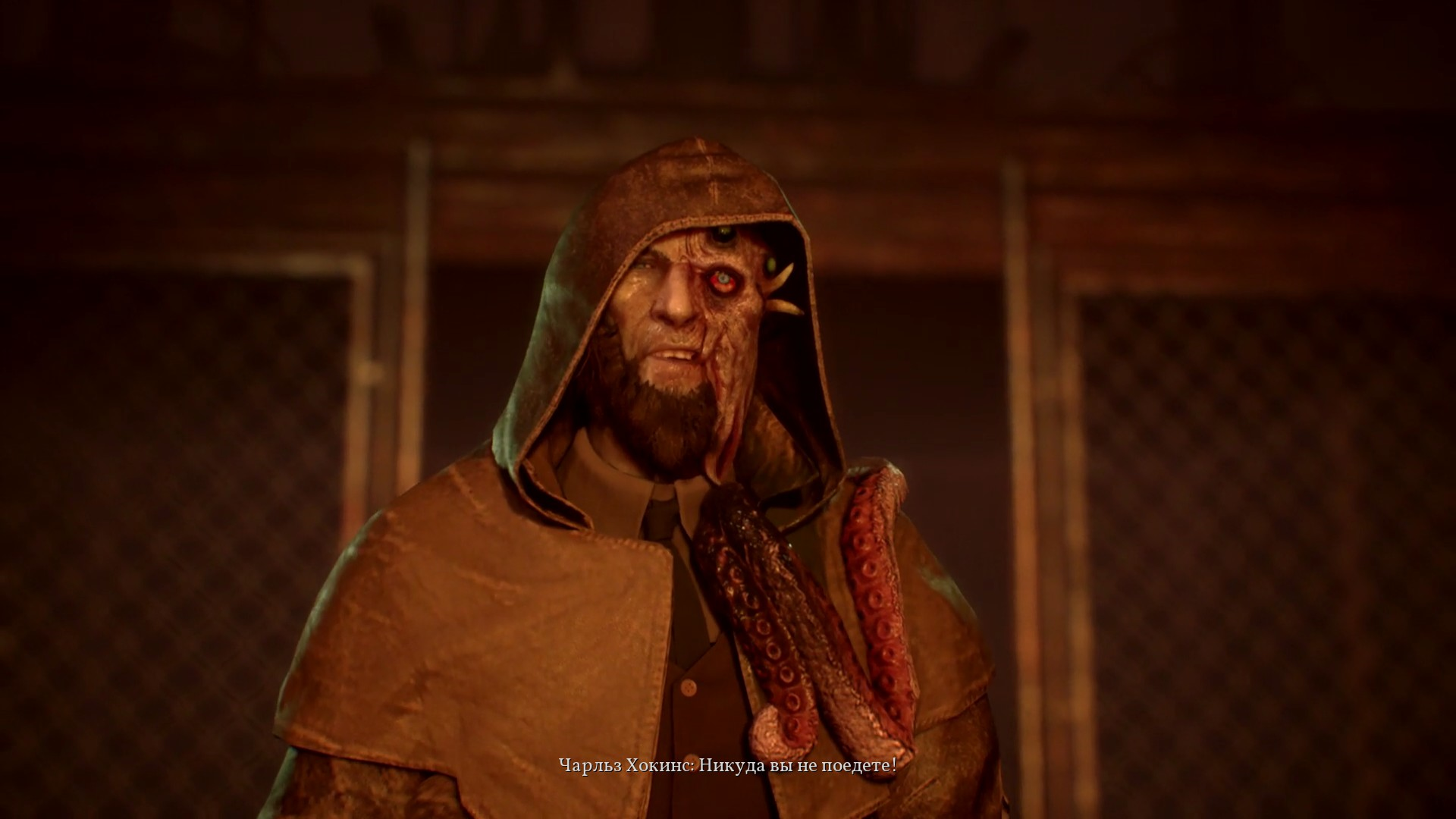 А теперь самое интересное. При побеге на нас нападает Чарльз Хокинс и мы узнаем нечто странное. Оказывается он хотел защитить свою жену, поместив ее в психушку, потому что на нее воздействовала темная сила. Жалко конечно, что вел он себя как семейный - домашний тиран, который не давал жене права голоса. Сара убивает Чарльза кочергой, пока тот пытался задушить Пирса. В целом, Чарльз сообщил Пирсу, что не хочет, чтобы Сарой овладел культ Ктулху и что на острове есть его приспешники.