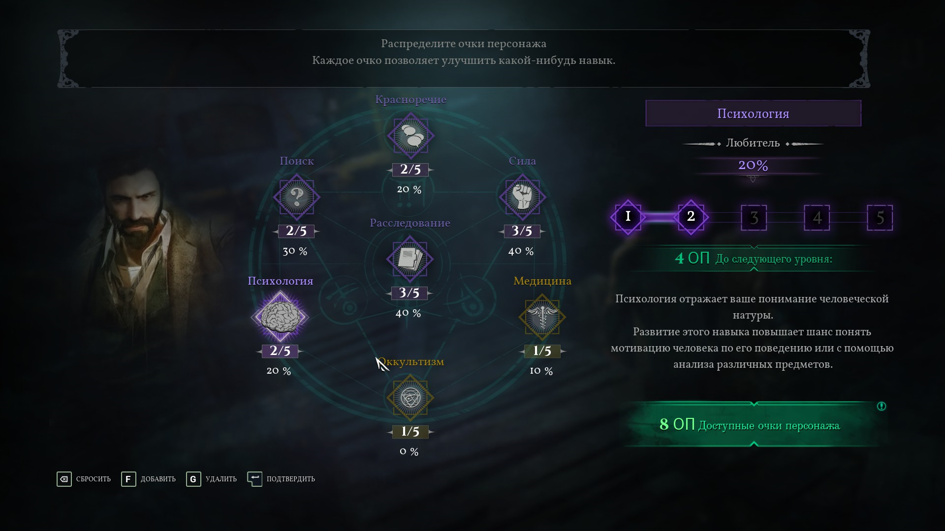 Фичи игры прикольные. Весьма хорошо показаны детективные навыки, а также неплохо сочтены рпг-элементы прокачки навыков, таких как "поиск" или "психология", которые используются в диалогах или при поиске предметов. Стелс в игре реализован так себе, как и хоррор элементы - было вовсем не страшно, кроме некоторых скримеров. Да, атмосфера Лавкрафта чувствовалась. Какие-то оккультисты, какие-то артефакты, культисты, остров ДАРКВОТЕР, непонятное дело, щупальца, вода, все это из мира Лавкрафта, я бы сказал игра больше всего похожа на рассказ "Тень над Инсмутом".
