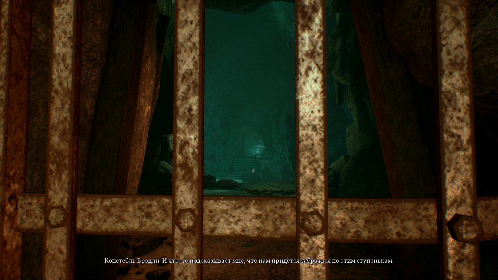 Мы возвращаемся в свое тело и замечаем, как Брэдли открывает нам камеру, вручая нам оружие.