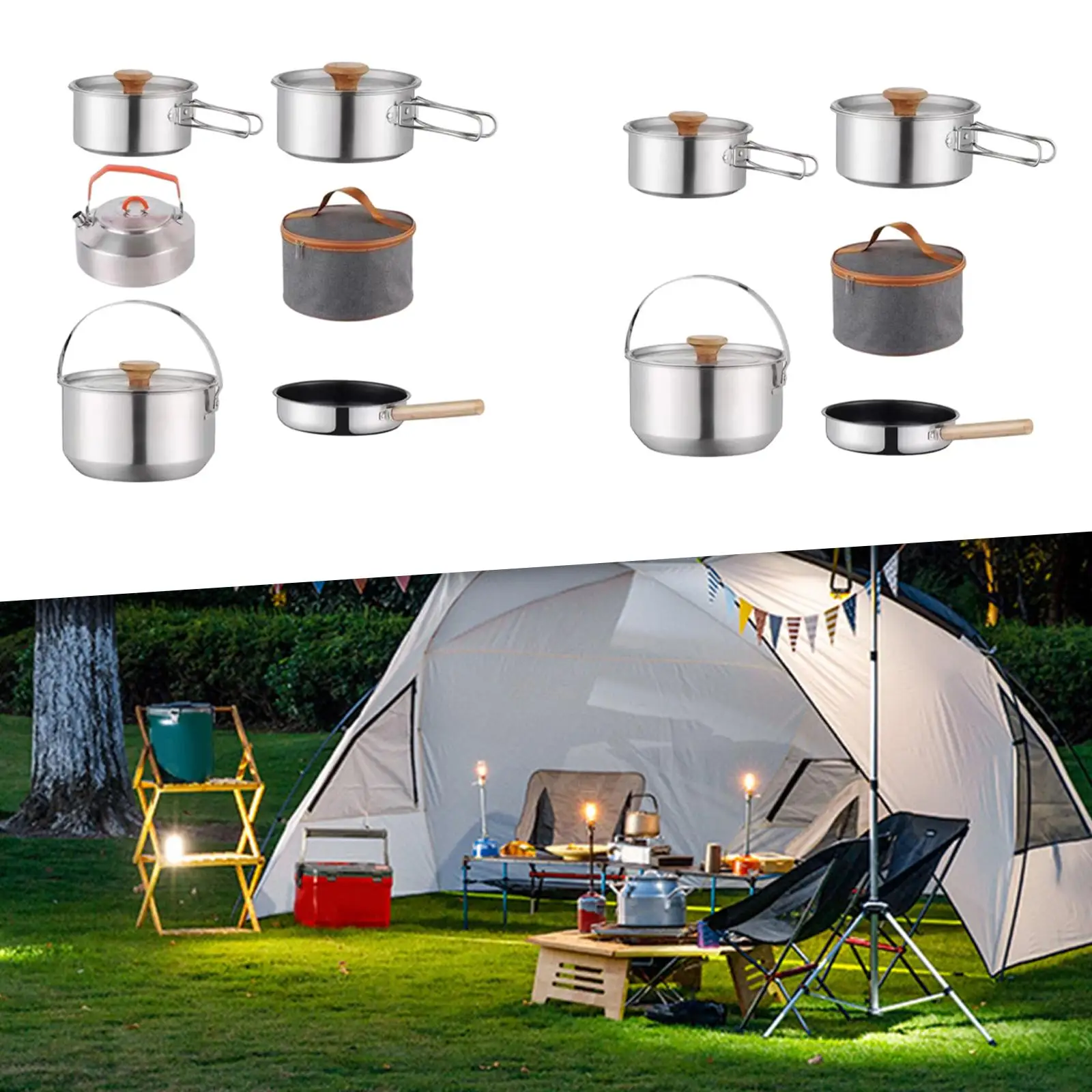inFOQUZXHere you can buy Camping Cookware Kit Frying Pan Lightweight Tableware Hanging Pot Cookset with free delivery to your post office.