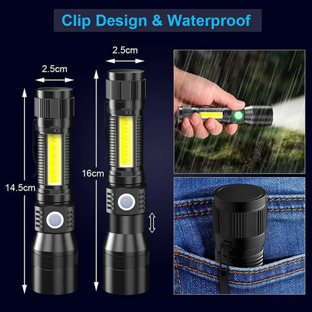 Camping Flashlight Magnetic Base Clip Design LED Torchlight Pocket LED Flashlight Torch Lamp with COB Sidelight - Купить с бесплатной доставкой