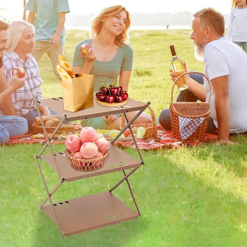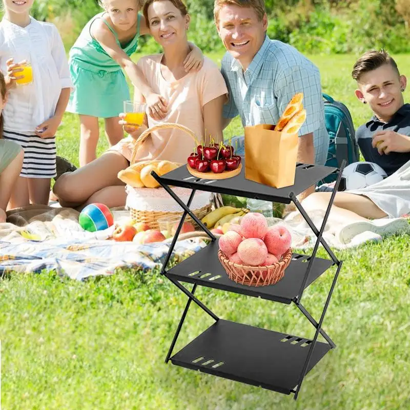Camping Shelf 3-Tier Free Standing Camping Rack Multi-Function Indoor Outdoor Metal Storage Shelf Portable Organizer Unit - Купить с бесплатной доставкой