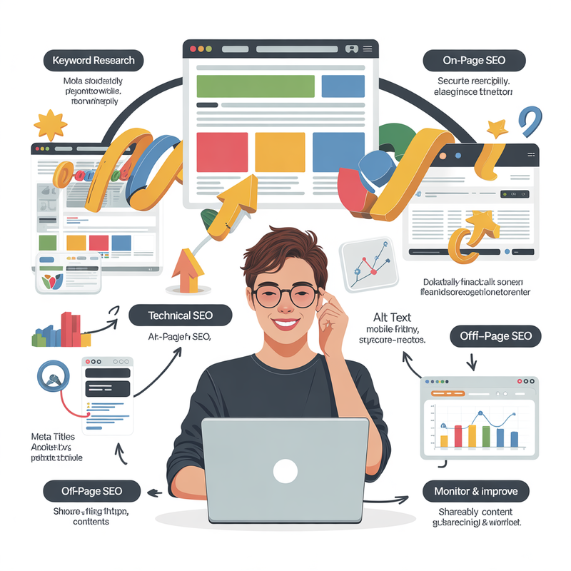 Technical SEO ensures your website structure is search-engine friendly. Even beginners can implement simple improvements: