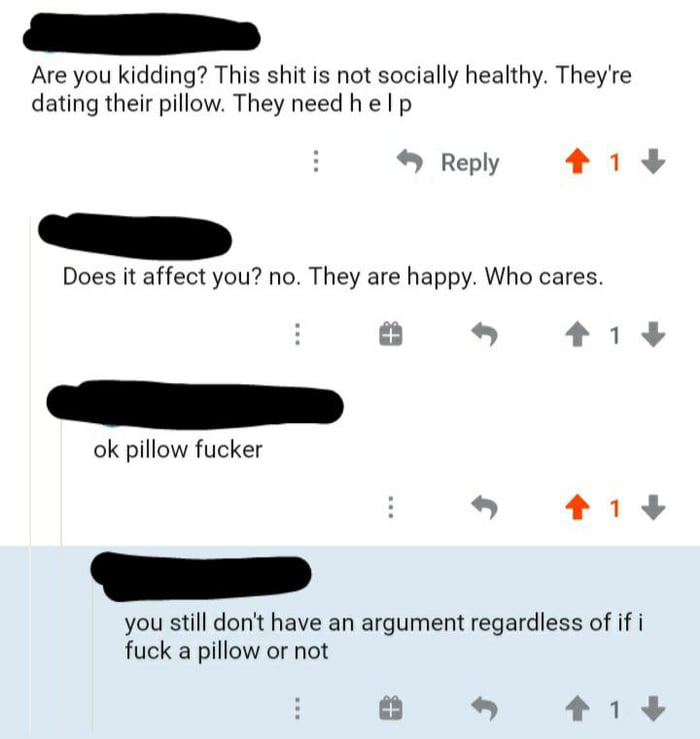 This is obviously a joke, but to the person who asked who would want to have sex with a pillow: You can buy pillows that have vibrators attached, some people really get into it . 0 4 . Jewels . Lv 5 . 1 decade ago . You would be violating that poor pillow . The pillow is unable to defend for itself ;*(5 0 .