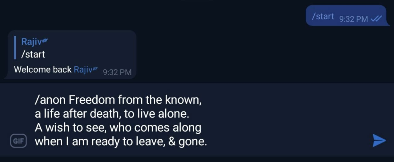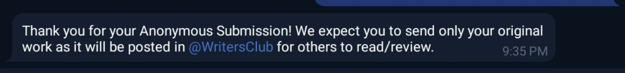 Rajiv AnandWe are aware that it takes courage for many to post their work in a public domain. To support your confidence and endeavor, we created special command in our @WritersClubBot. Go to @WritersClubBot private and write your post in the following format: