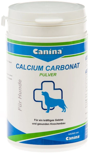 Canina калциев карбонат на прах . Canina калциев карбонат на прах за оптимално насърчаване на костната структура, зъбите, развитието на скелета, както и за поддържане на функцията на мускулите и за защита срещу остеопороза .