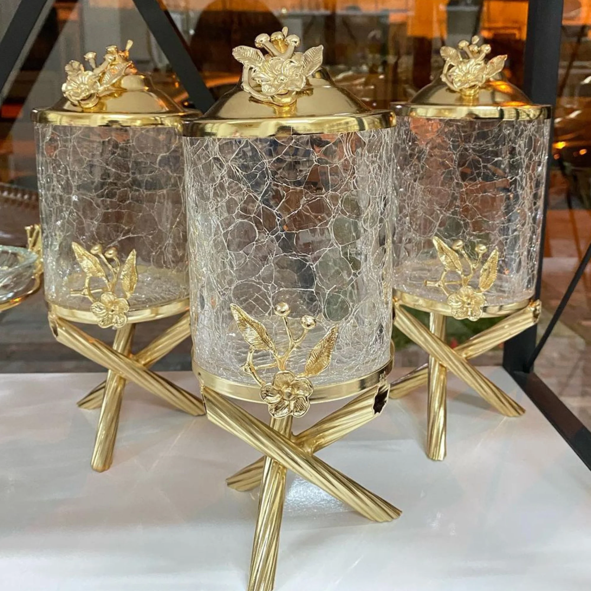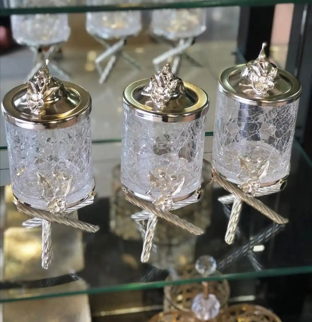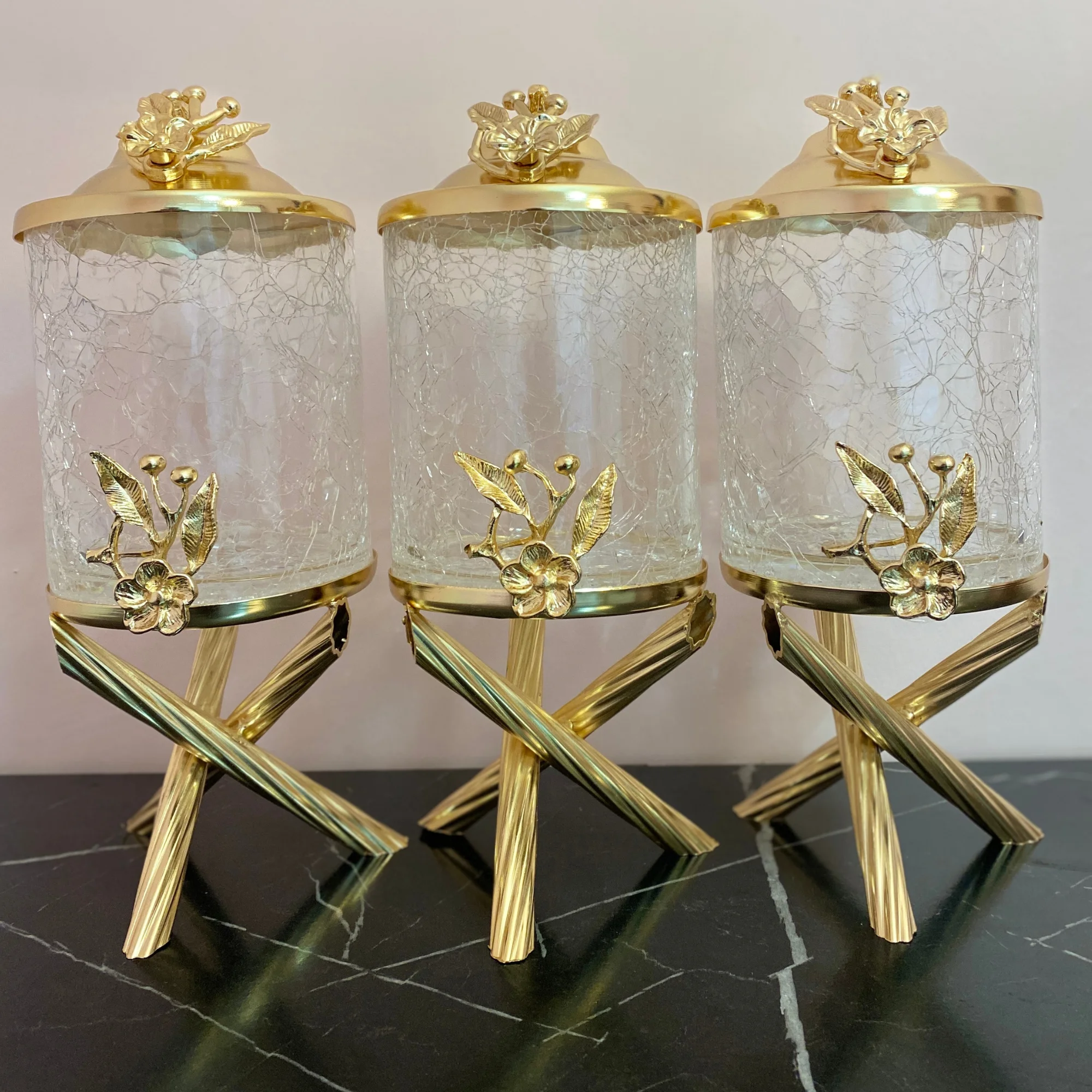Canister Set For Kitchen 3 Piece Glass Stand High Workmanship Metal Tea Sugar Salt Storage Container Durable Sturdy Production Original Designs Artistic Kitchenware Gift Gold Color Transparent Erasable Quality Table - Купить с бесплатной доставкой