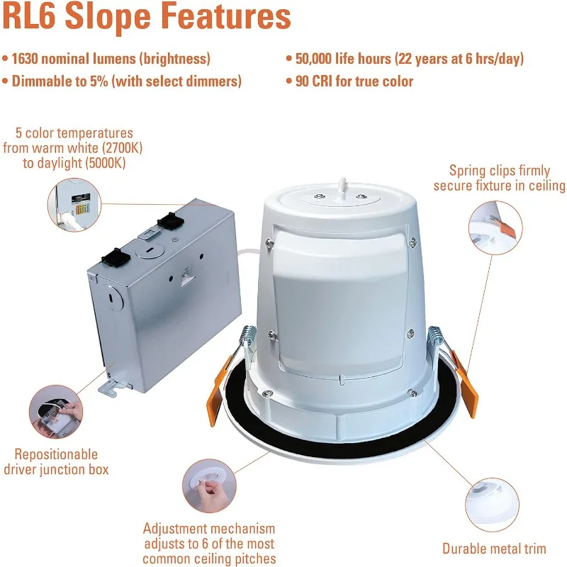 jPeqBqKuXHere you can buy Canless LED Module Selectable 2700K, 3000K, 3500K, 4000K, 5000K CCT RL Slope Ceiling Direct Mount 6 inch White with free delivery to your post office.