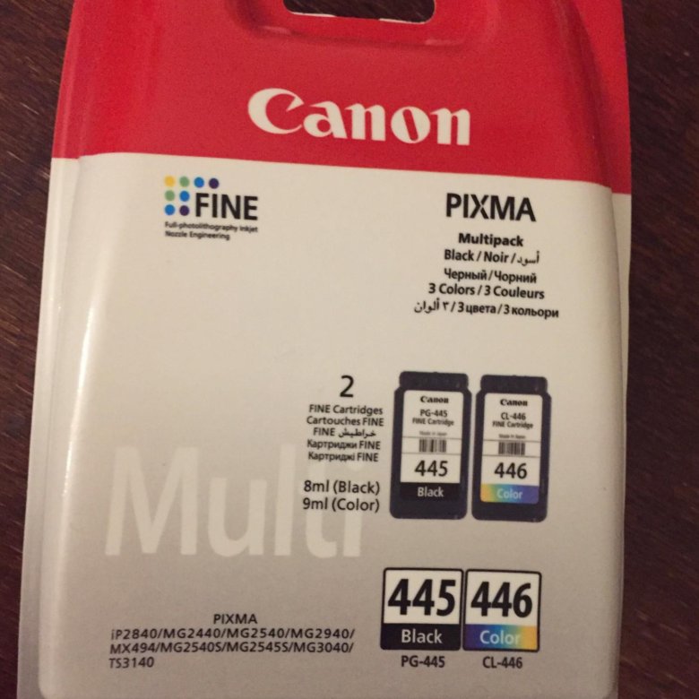 Для качественной печати наша компания предлагает купить комплект чернил для картриджей Canon PG- 445 и CL- 446 , краска корейского производства . Они качественные и при этом дешевле европейских и американских аналогов .