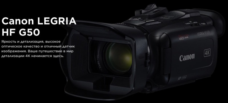 Canon LEGRIA HF G50 . Vivid detail, powerful optics and a stunning sensor . Your journey into the super sharp world of 4K starts here . Get more from your memories . Live for the moment and capture in stunning 4K your precious stories in incredible detail, thanks to an easy to use camcorder boasting premium Canon optics and an incredible sensor .
