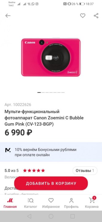 Специальная цена7 499 ₽ . Добавить в Избранное Сравнить . Фотокамера для мгновенной печати Zoemini C , цвет фуксия . Сделайте идеальное селфи с помощью зеркала Canon Zoemini C и мгновенно печатайте снимки . . .