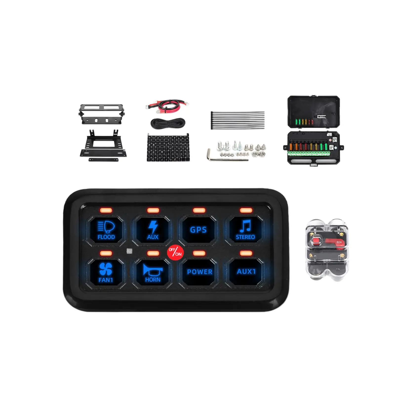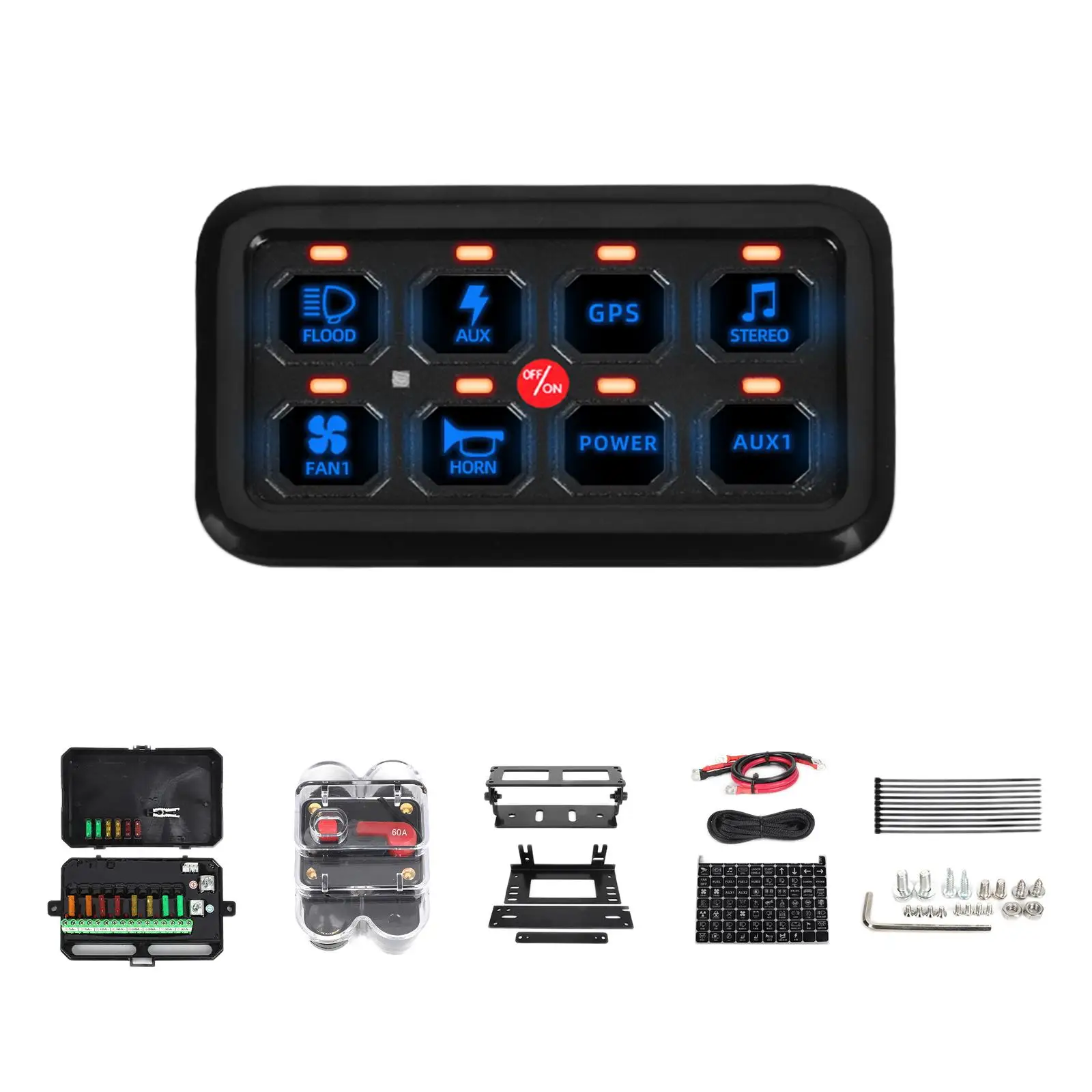 NOAPCBelHere you can buy Car 8 Gang Switch Panel Multifunction Switch Panel IP65 Waterproof with Multifunction Sticker on Off Fused Control Power System with free delivery to your post office.