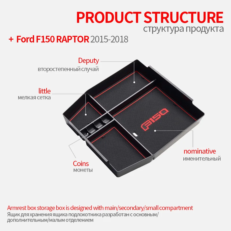 «Car ABS Central Armrest Storage Box Container Holder Tray For Ford F150 RAPTOR 2015-2018 AT Accessories 1pcs Black» по лучшей цене на рынке! Всего за 34$ (3230рублей)