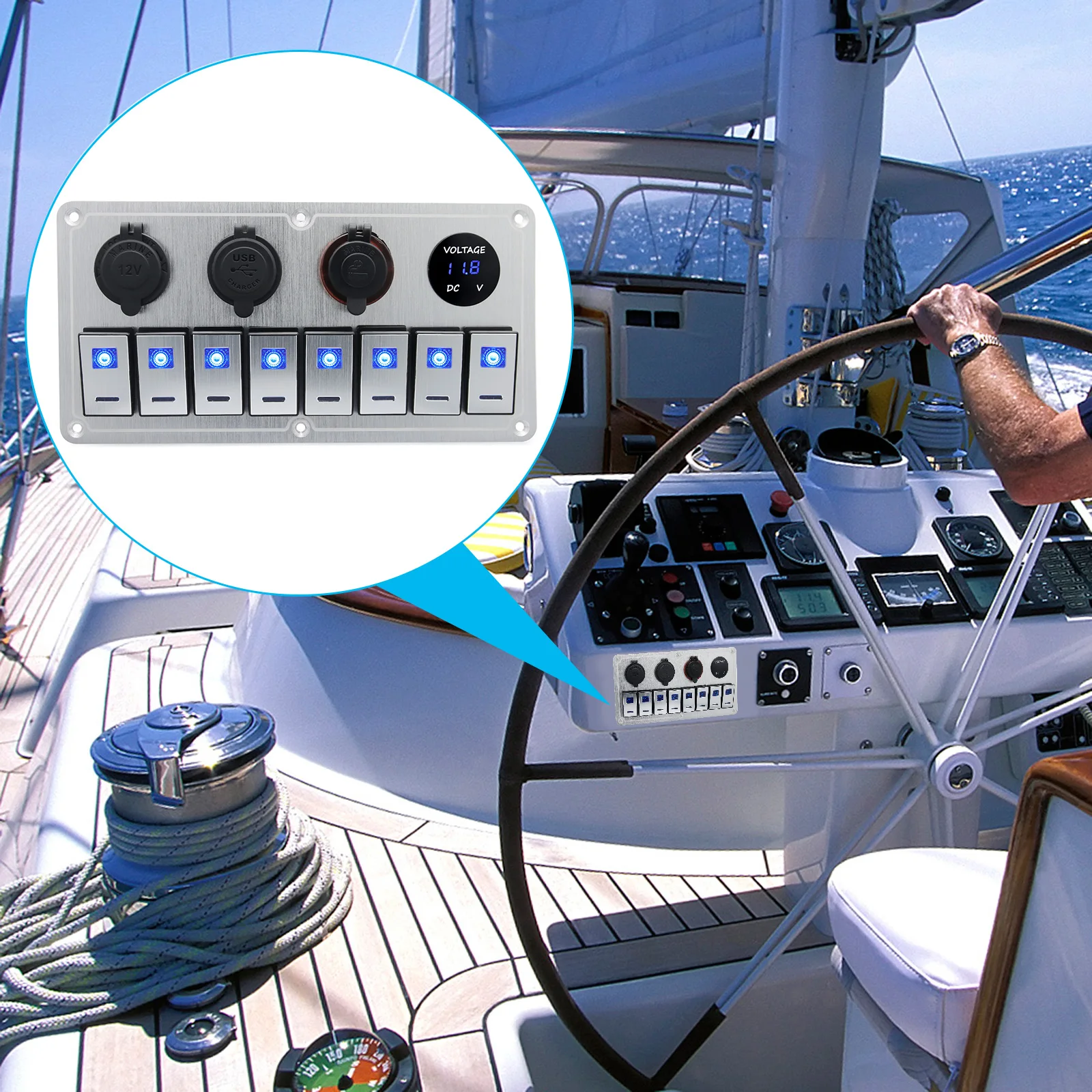 Car Accessory 12V LED Metal Switch Panel Digital Voltmeter USB Port Outlet Combination Marine LED Rocker cigarette lighter - Купить с бесплатной доставкой