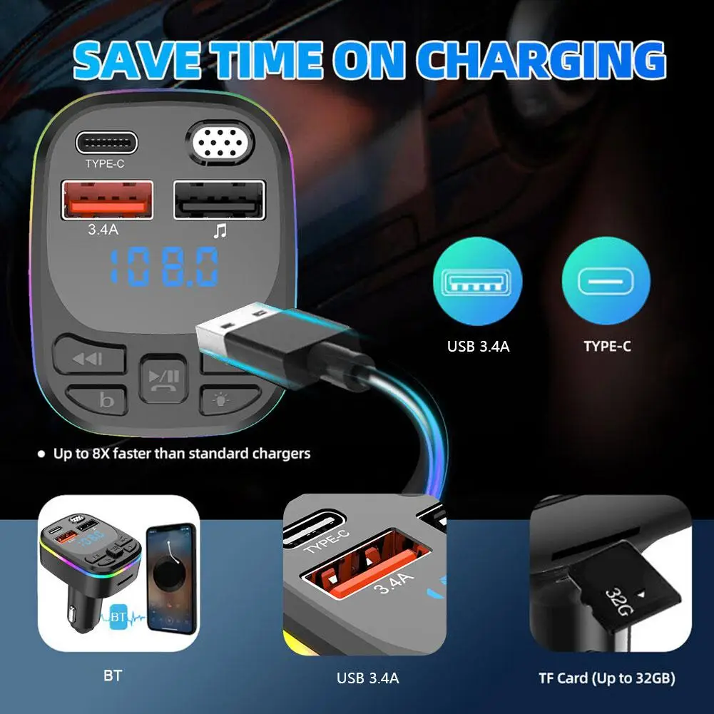 KOXwcSbpNSЗдесь вы сможете купить Car Bluetooth 5.0 FM Transmitter PD Type-C Dual USB MP3 Colorful Charger Handsfree Accessory Fast 3.1A Modulator Player Lig T3P5 с бесплатной доставкой до вашего почтового отделения.