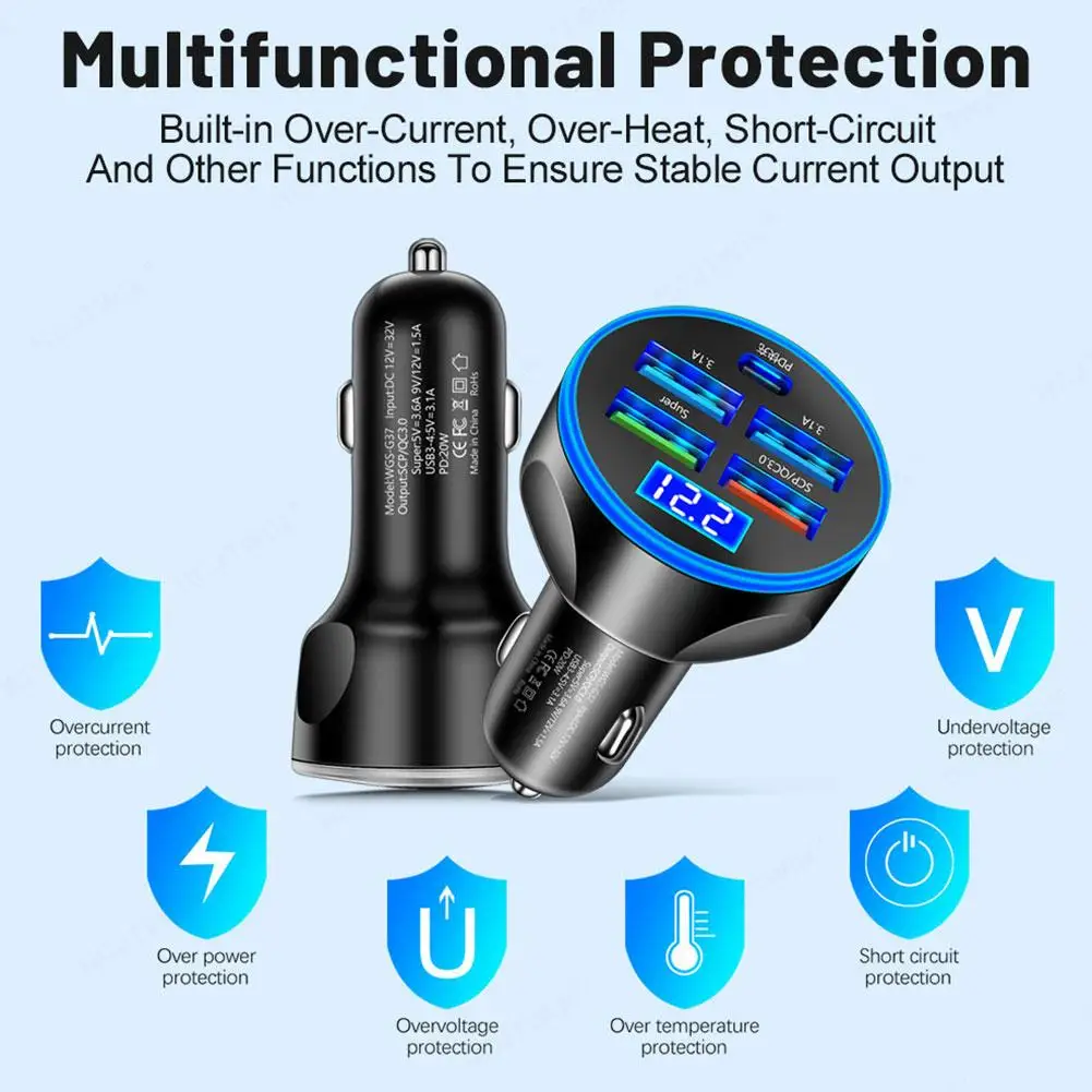 lKPlkWejHere you can buy Car Charger 5 In 1 Led Digital Display Plug Adapter Fast Charging For iPhone Samsung HUAWEI Android with free delivery to your post office.
