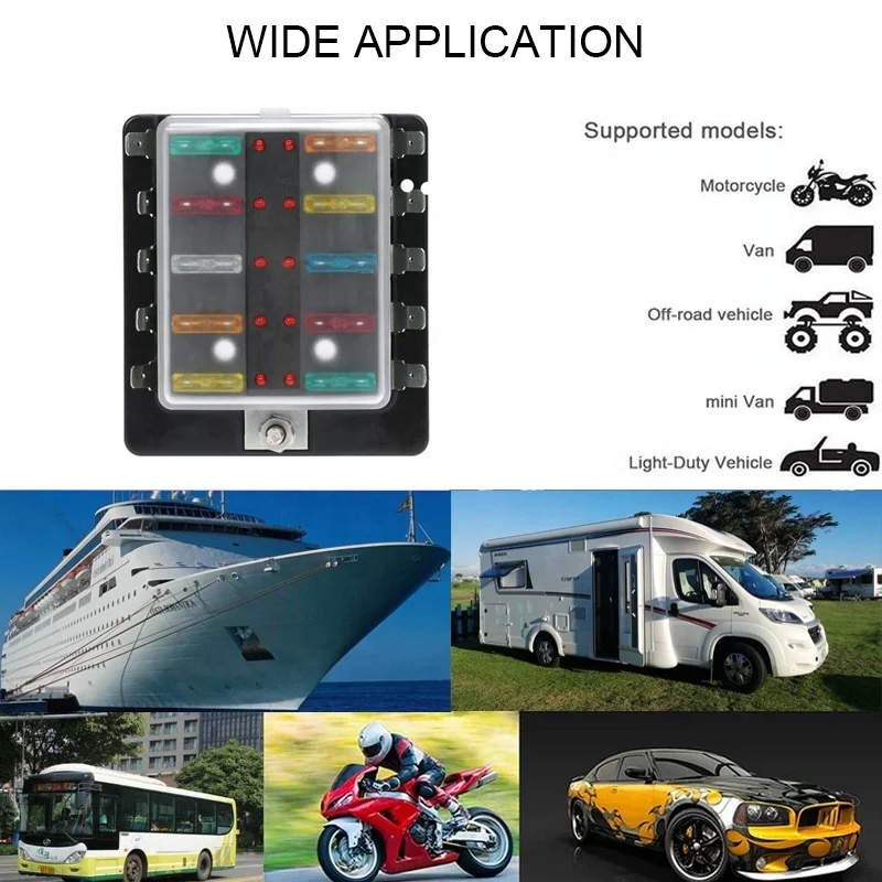"Car Fuse Box 10 Way Blade Fuse Box Holder with LED Warning Light Kit for Car Boat Marine Trike 12V 24V" * Buy Now Just For 13$