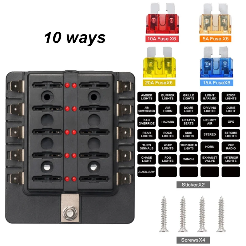 EQEhQPUELooked for Car Fuse Box 10 Way Blade Fuse Box Holder with LED Warning Light Kit for Car Boat Marine Trike 12V 24V for a long time, but could not find it? Bring to your attention Car Fuse Box 10 Way Blade Fuse Box Holder with LED Warning Light Kit for Car Boat Marine Trike 12V 24V with the best price!