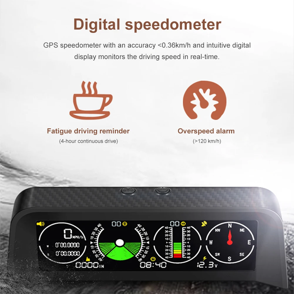 Car HUD Inclinometer Head Up Display GPS Speedometer MPH Compass Digital Slope Angle Meter Altitude Gauge for Off-Road Vehicles - Купить с бесплатной доставкой