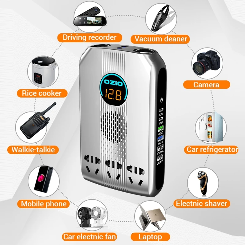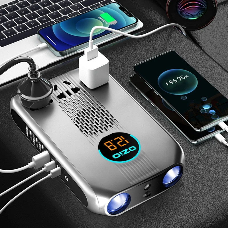 YWpllIhuLooked for Car Inverter 12V/24V To 220V Inversor Converter 200W 6 USB QC3.0 PD Car Fast Charger,3 Socket 2 Cigarette Lighter Power Inverter for a long time, but could not find it? Bring to your attention Car Inverter 12V/24V To 220V Inversor Converter 200W 6 USB QC3.0 PD Car Fast Charger,3 Socket 2 Cigarette Lighter Power Inverter with the best price!