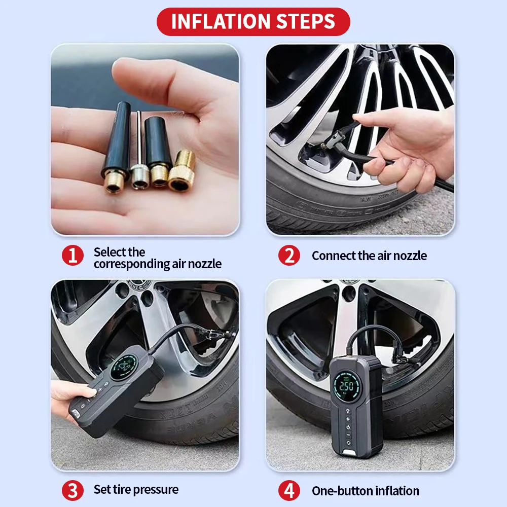 RNAugFArHere you can buy Car Jump Starter Air Pump Power Bank Lighting Portable Air Compressor 4 in 1 Cars Battery Starters Starting Auto Tyre Inflator with free delivery to your post office.