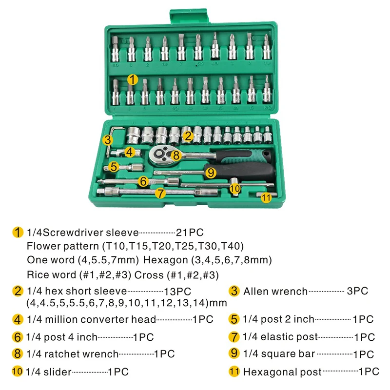 dGiyKFfpsHere you can buy Car Mechanic Hand Tools Repair Tool Set Box Auto Kit Socket Professional Wrench Set With Ratchet Auto Kits Herramientas Sleeve with free delivery to your post office.