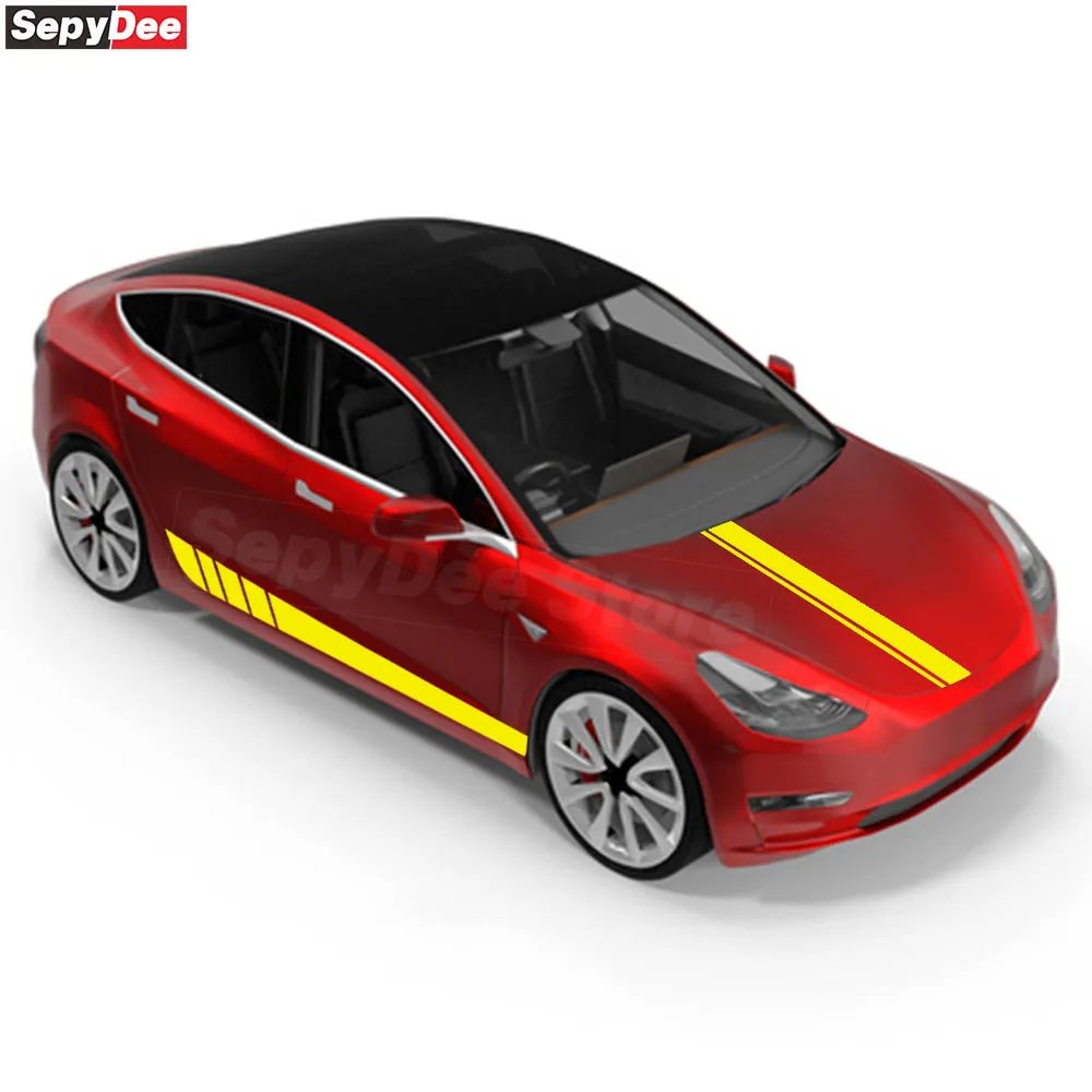 Car Side Stripes Skirt Stickers Auto Body Hood Bonnet Sports Style Decals For Tesla Model 3 Model Y Model S Model X Accessories - Купить с бесплатной доставкой