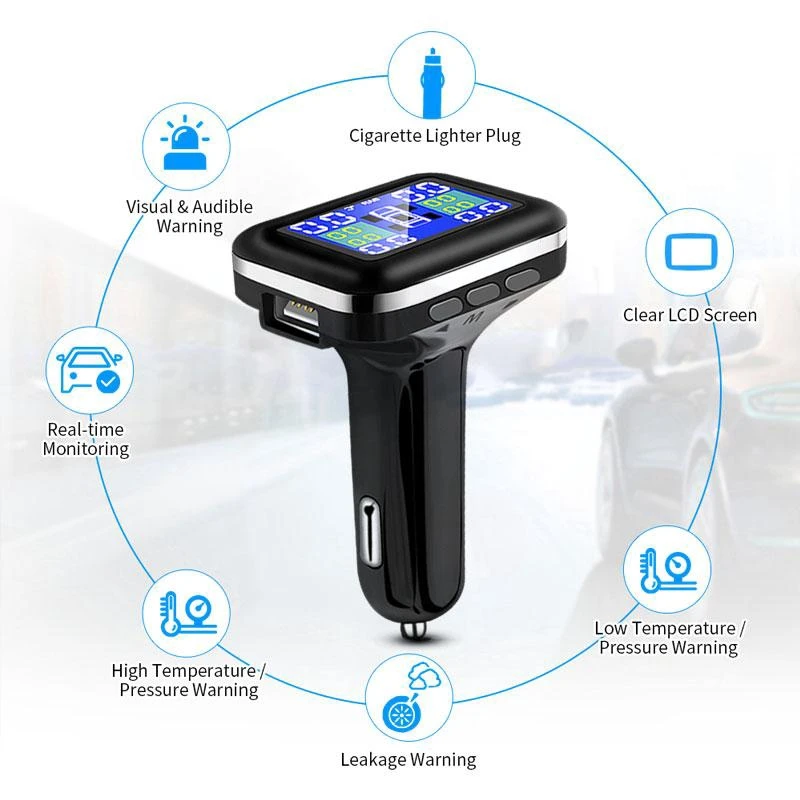 MlBXDCezrnЗдесь вы сможете купить Car TPMS Tire Pressure Monitoring System Cigarette Lighter Plug Temperature Voltage Display with USB Port + 4Pcs External Sensor с бесплатной доставкой до вашего почтового отделения.