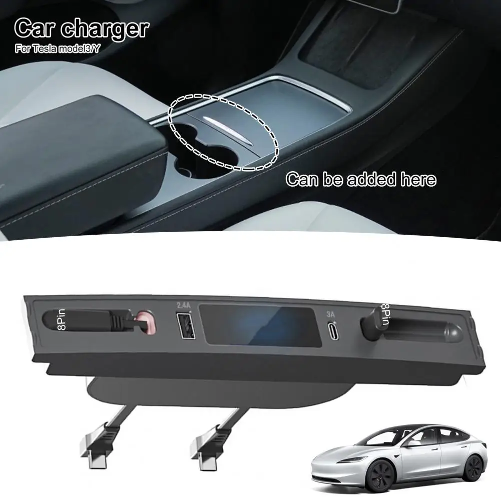 jYHNtVgKHere you can buy Car USB Charger Multi Ports Retractable Cable Fast Charging High Speed Transmission LCD Display USB Hub for Tesla Model 3/Y with free delivery to your post office.