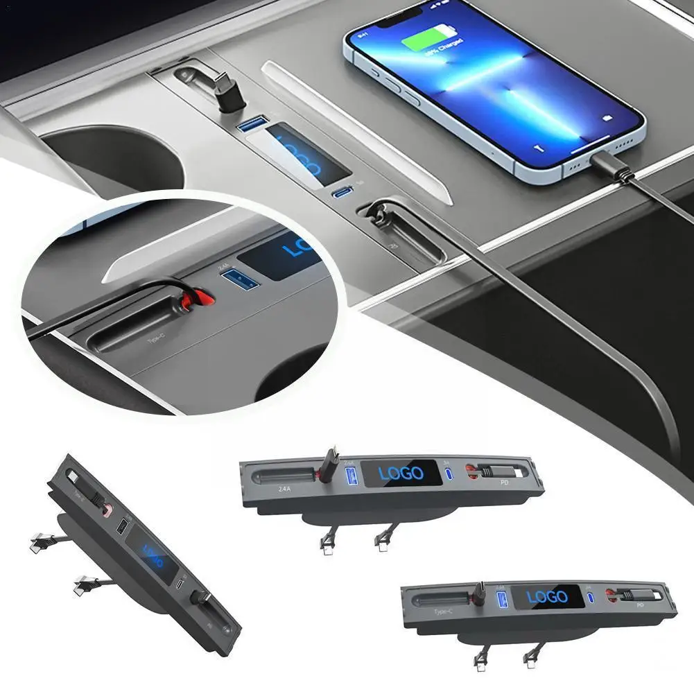 "Car USB Charger Retractable Cable Quick Charger USB Shunt Hub Extension Center Console Smart Sensor Accessories For Model 3 Q6F6" * Buy Now With Free Shipping Just For $25