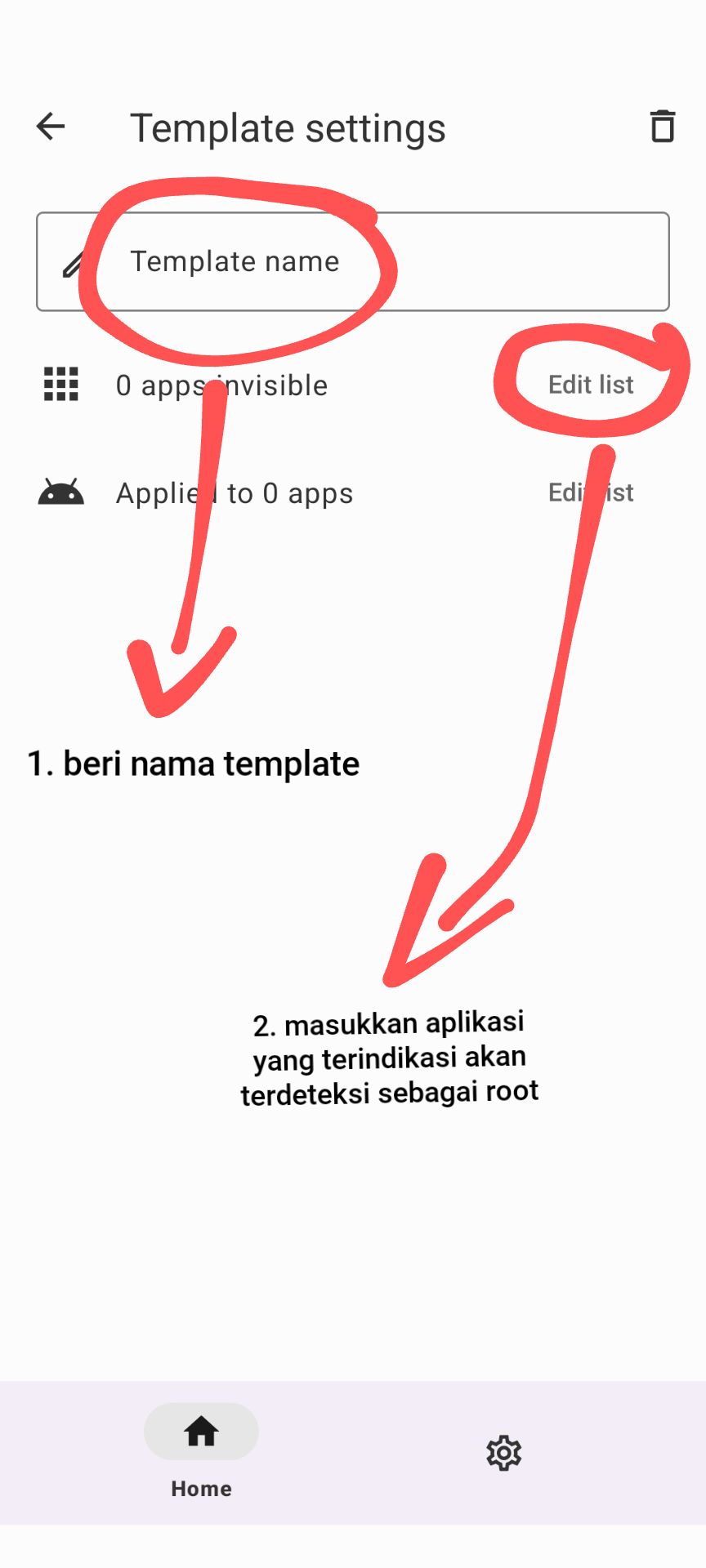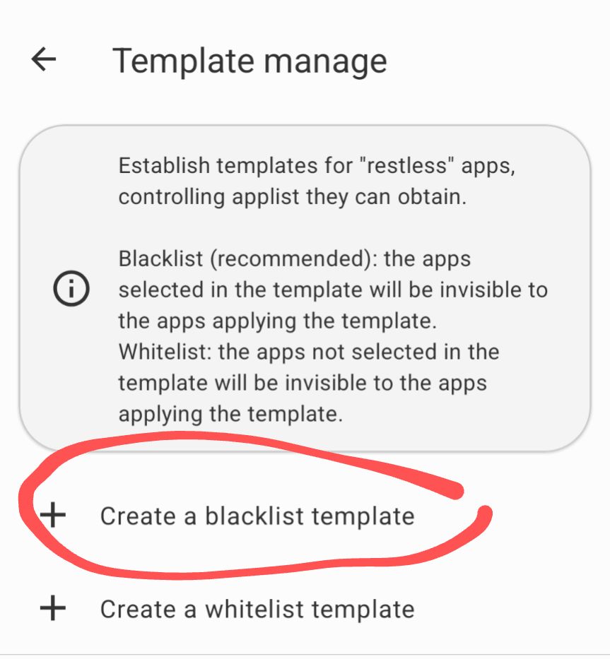 - Beri nama template tersebut, lalu masukkan aplikasi-aplikasi yang terindikasi akan terdeteksi sebagai root. Seperti contoh aplikasi KernelSU, aplikasi-aplikasi modul LSPosed, MT Manager, dan lain sebagainya.