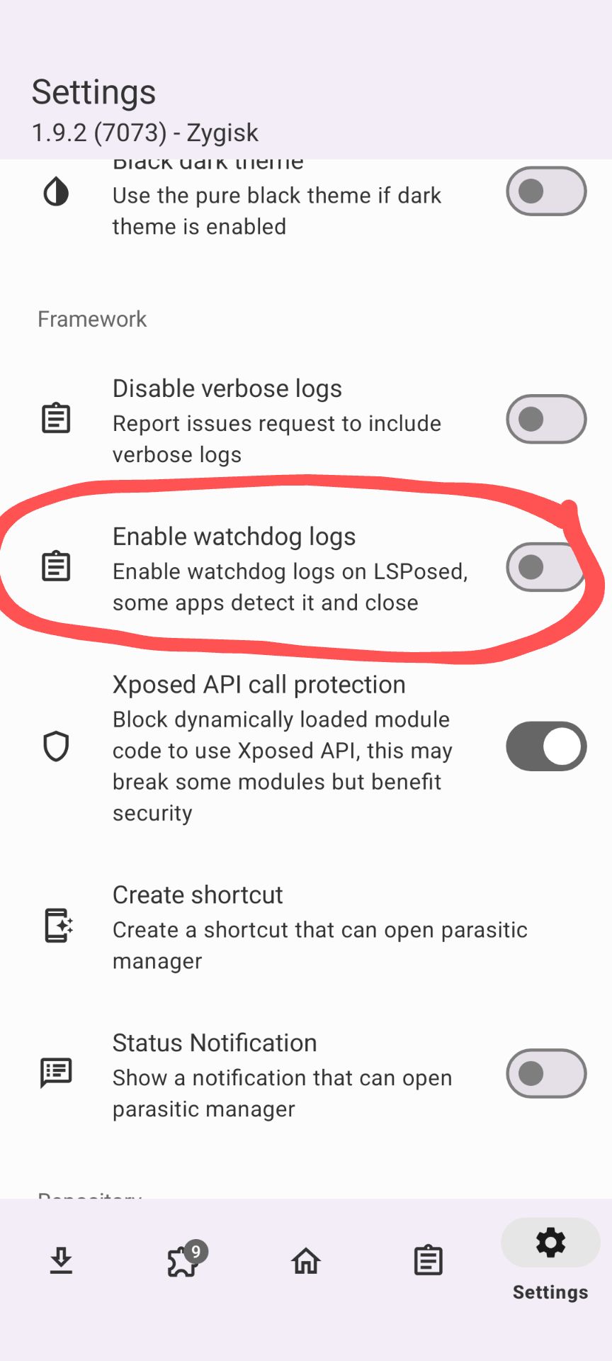 - Kamu dapat menggunakan modul "turnofflogd" untuk mematikan logs. Tujuannya adalah untuk mencegah pendeteksian Zygisk & LSPosed.