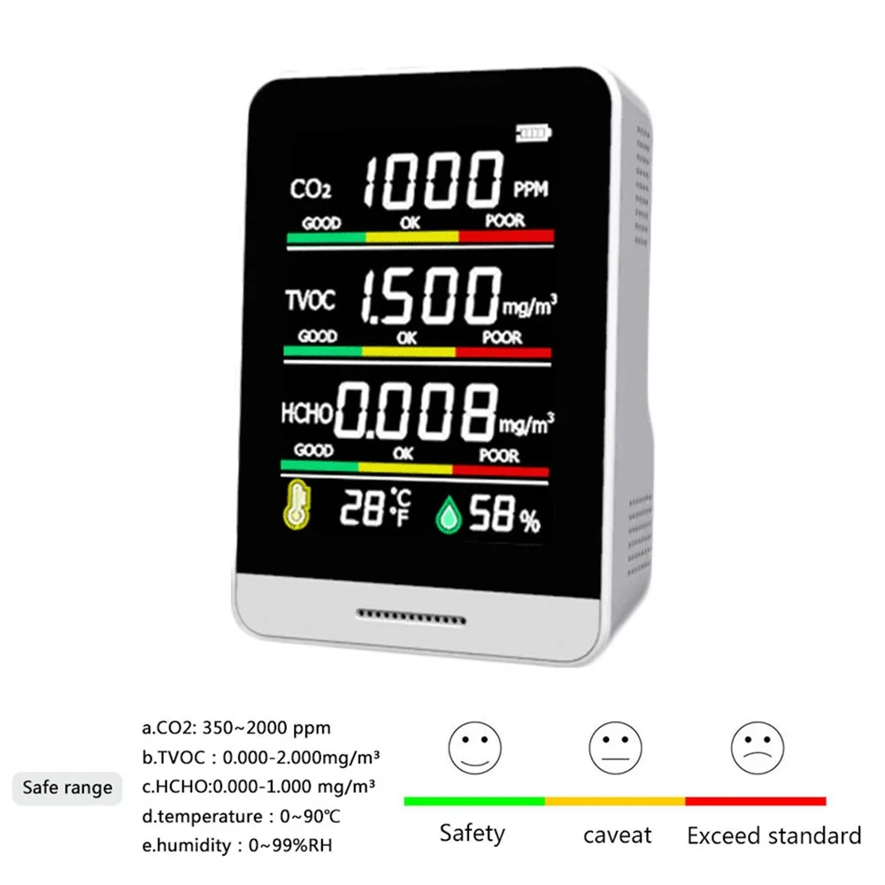 RBAeQJBiuДолго искали Carbon Dioxide Detector Set Portable Intelligent CO2 HCHO TVOC Detector Air Quality Monitor Temperature Humidity Sensor Detector, но не могли найти? Предоставляем вашему вниманию Carbon Dioxide Detector Set Portable Intelligent CO2 HCHO TVOC Detector Air Quality Monitor Temperature Humidity Sensor Detector по лучшей цене на рынке!