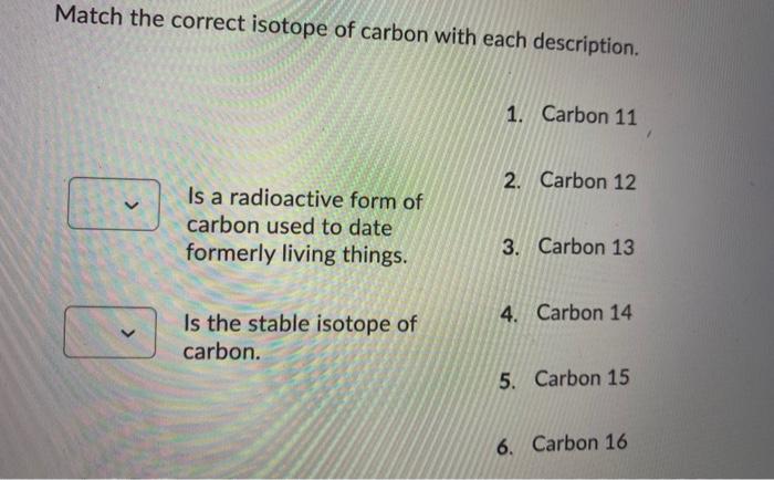 Radiocarbon dating uses carbon isotopes . Radiocarbon dating relies on the carbon isotopes carbon -14 and carbon -12 . Scientists are looking for the ratio of those two isotopes in a sample .