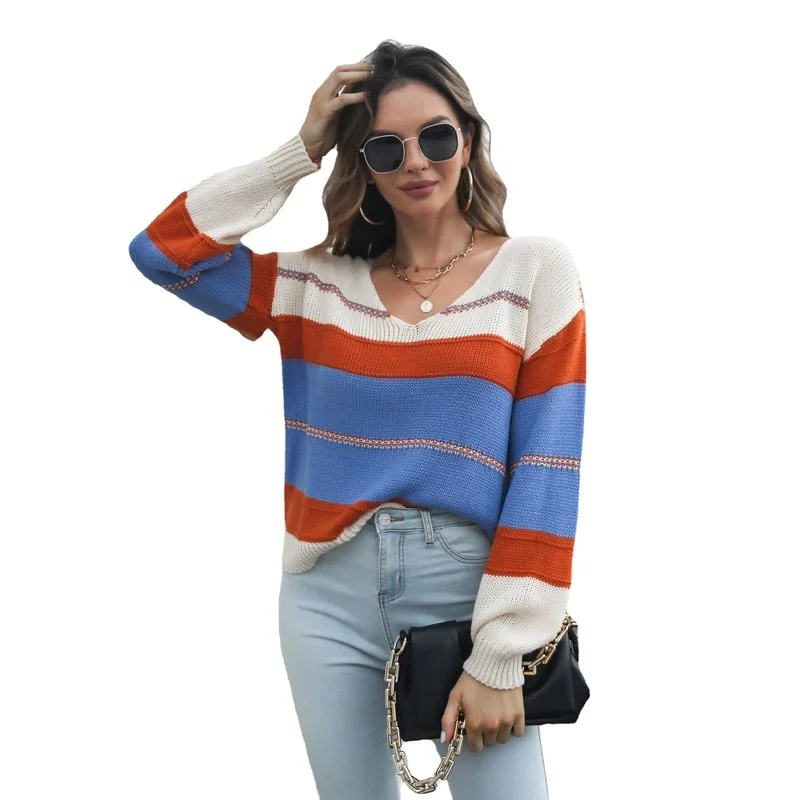 Autumn and Winter 2021 New Fashion Trendy Womens Casual Round Neck Long sleeved Tie dye Loose Womens Pullover Sweater Sweater po 10 02