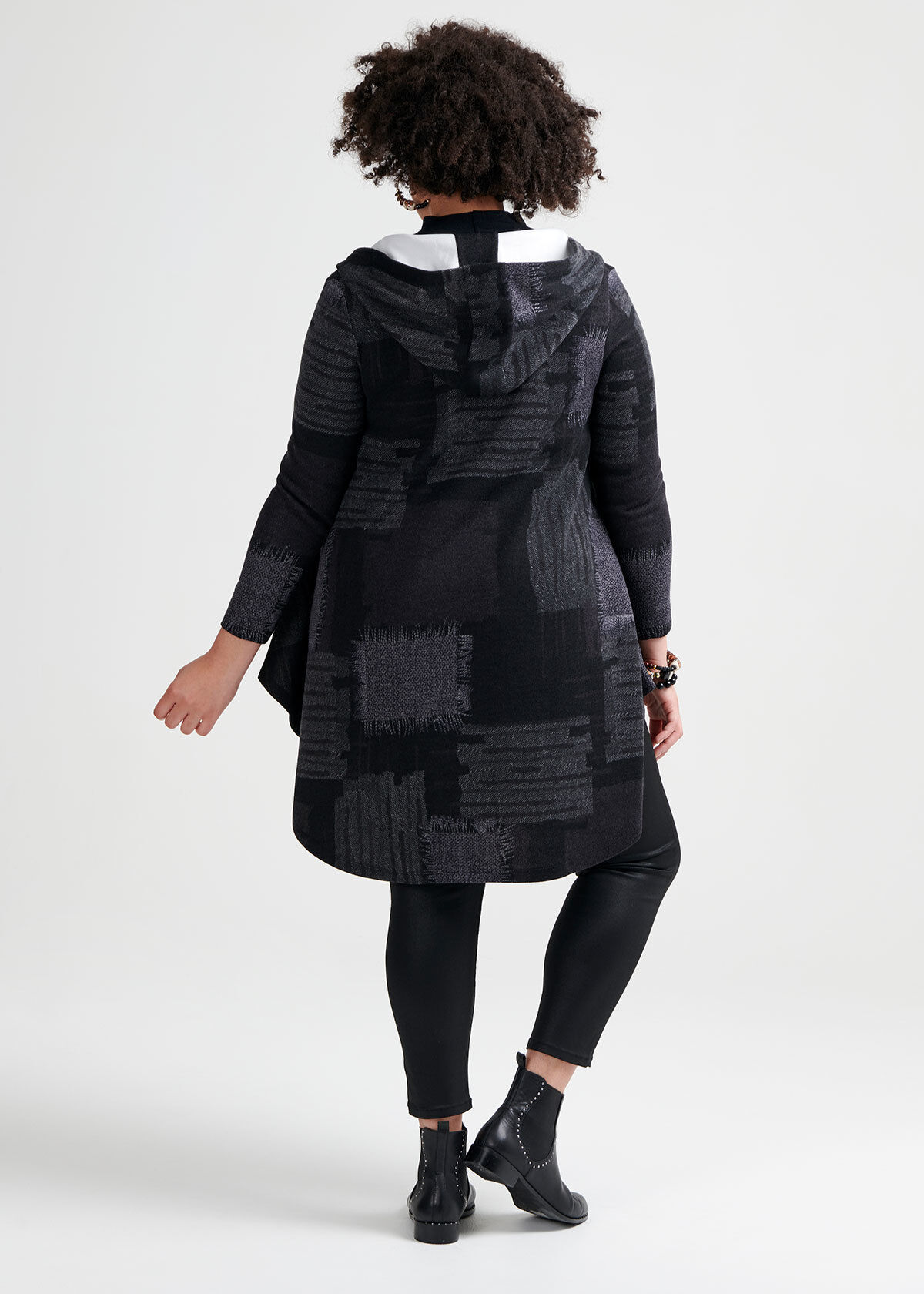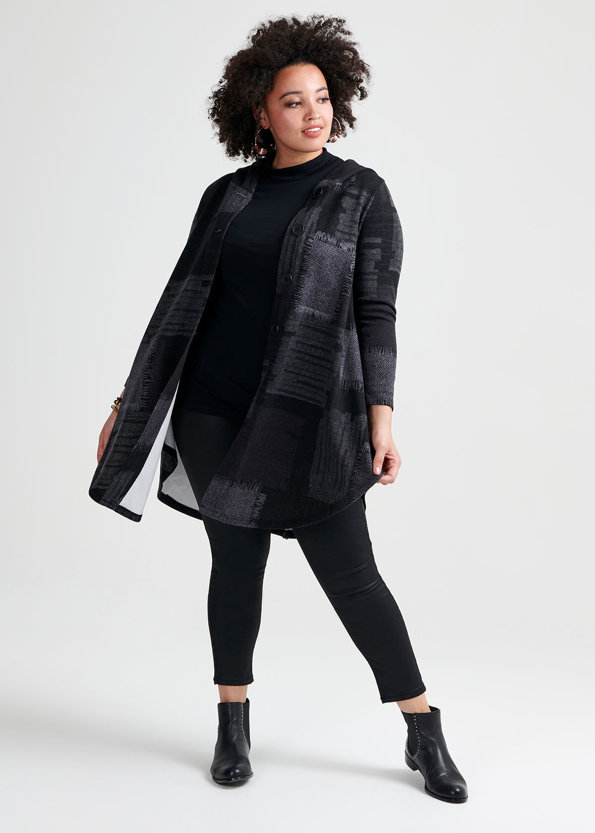 UGG Classic Cardy Black size 9 . . . It looks GREAT with black leggings and a nice cozy sweater . I probably wouldn't wear this on a heavily snowy day, just because I would be concerned of the snow melting into the sweater and it becoming wet - they arent waterproof and dont have anything to protect against . But they have already gotten plenty of use!