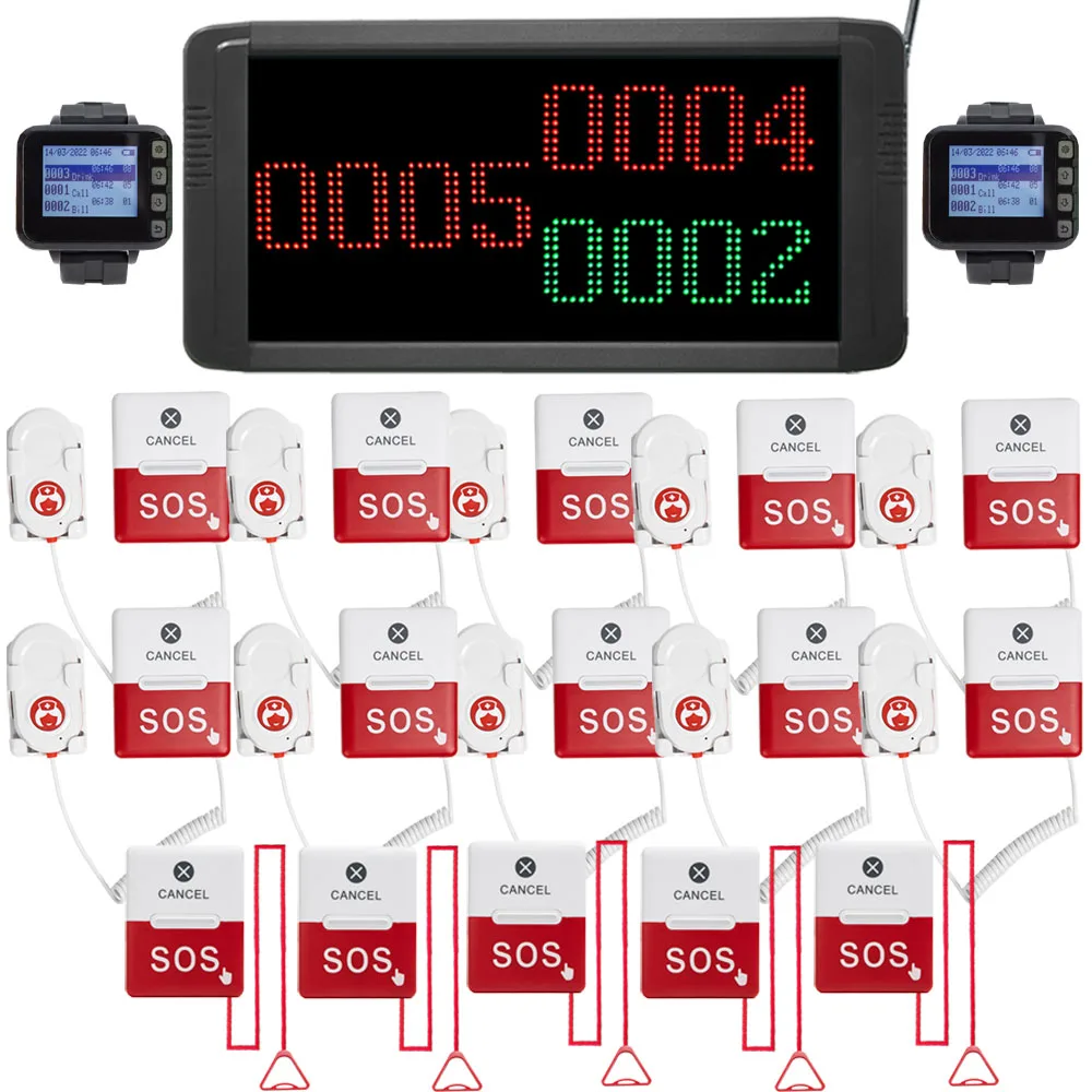 Caregiver Pager System Wireless Nurse Calling System With 1 Display Receiver/2 Watch Pagers/15 Call Buttons for Nursing Home - Купить с бесплатной доставкой