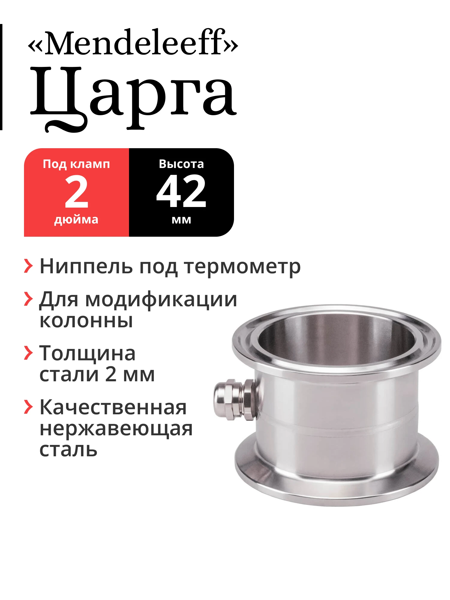 Царга 2 дюйма с ниппелем под термометр
