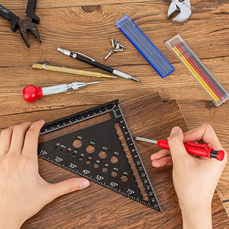 Carpenter Angle Ruler Multifunctional 180Mm Metal Including Deep Hole Marker/Pencil Refills/Center Punch - Купить с бесплатной доставкой