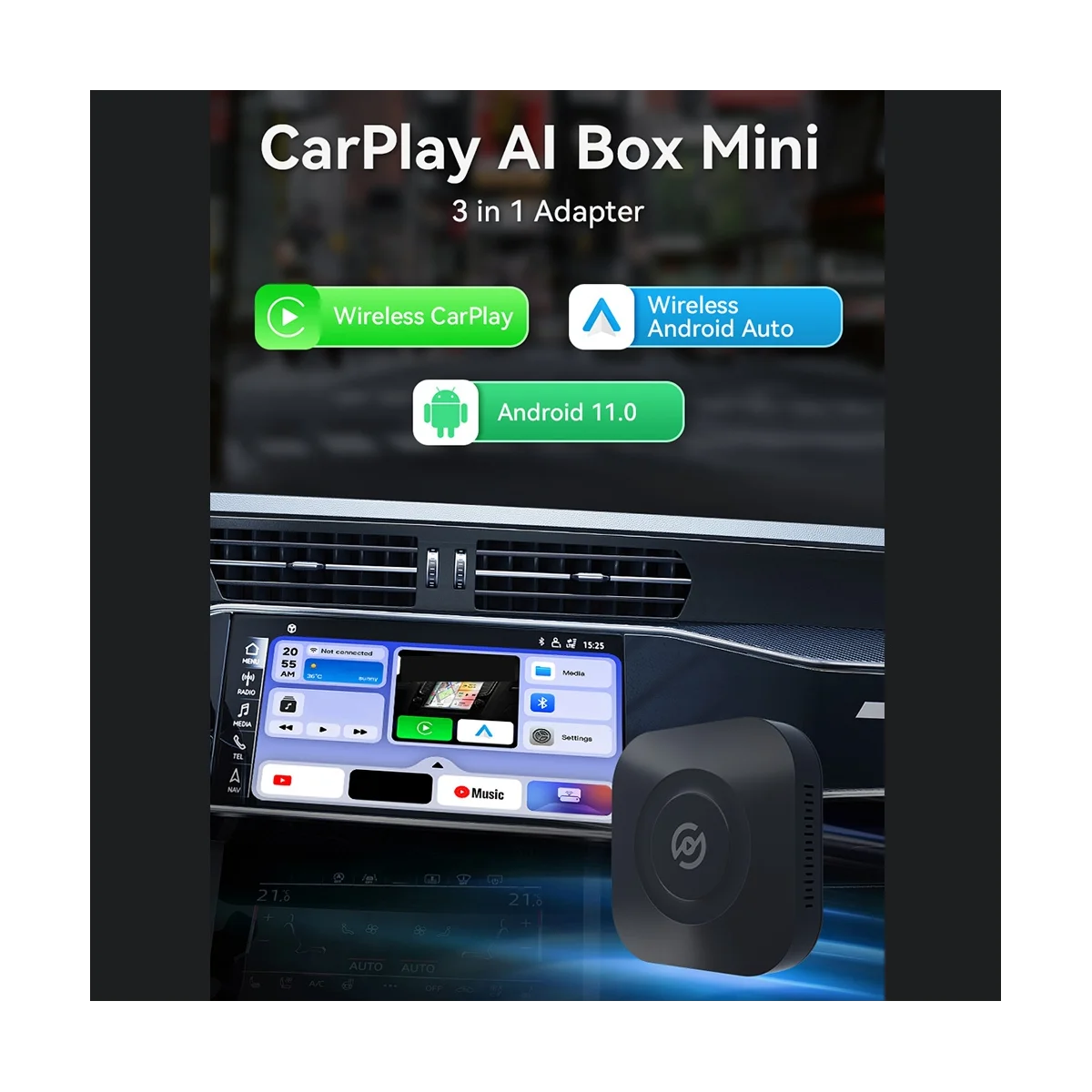 "Carplay Ai Box Mini Android 11.0 Wireless Adapter Multimedia Player WIFI Audio Music&MV for Car Built-In" * Buy Now With Free Shipping Just For $71